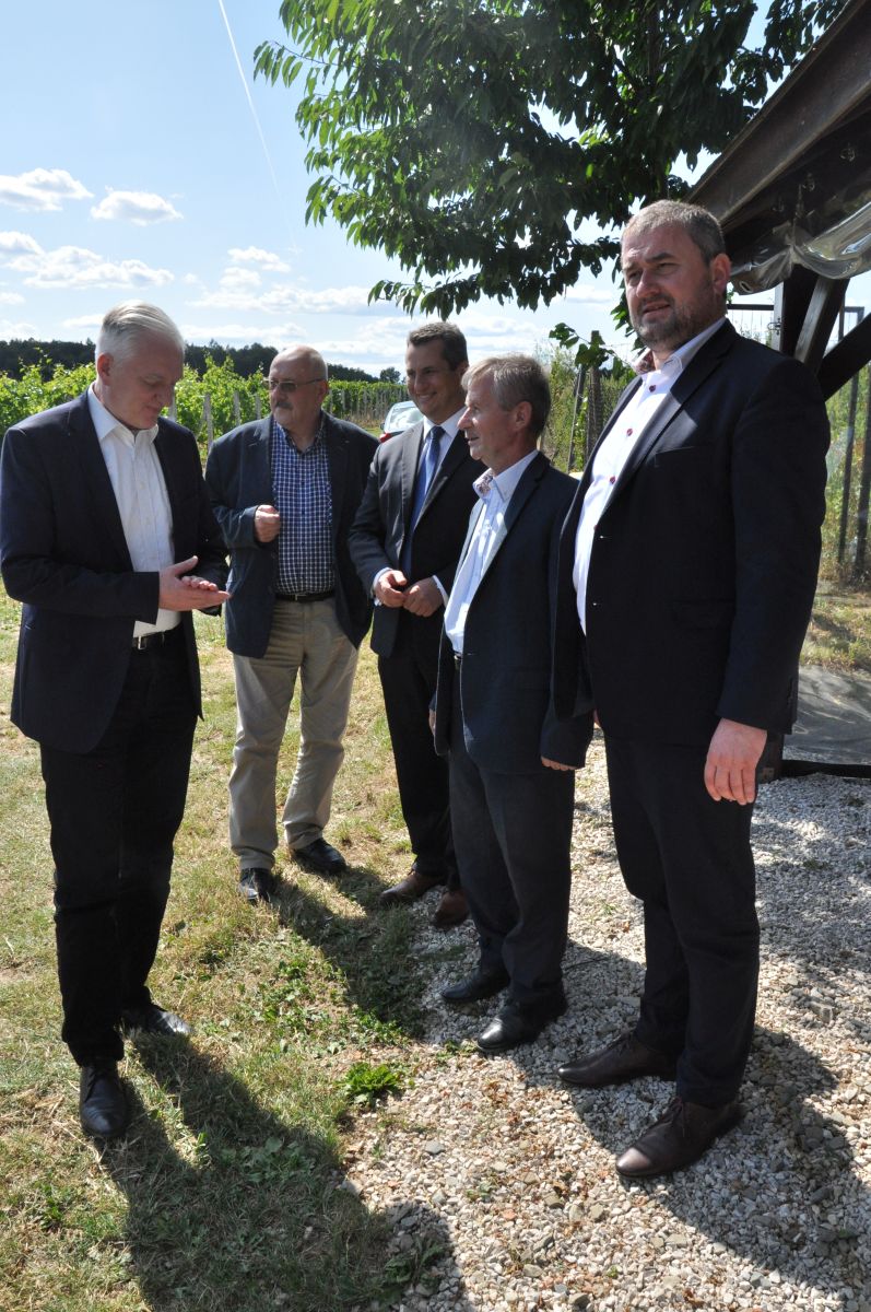 W spotkaniu z Jarosławem Gowinem oprócz Wójta Gminy Rzezawa Mariusza Paleja udział wzięli: Radny Sejmiku Małopolskiego Stanisław Bukowiec, Radny Miasta Bochnia Jerzy Lysy oraz Gospodarz Winnicy Adam Kiszka.
