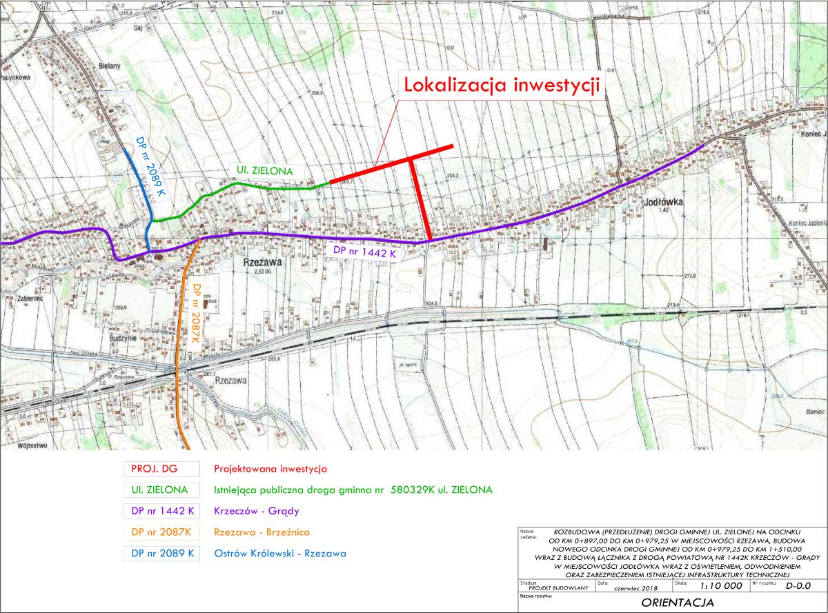 Przygotowania do rozpoczęcia inwestycji ruszyły już w połowie 2015 roku. Wójt Gminy Rzezawa Mariusz Palej podpisał wtedy umowę dotyczącą przygotowania wstępnego projektu podziału działek niezbędnych do budowy drogi. Dokument ten pozwolił na rozpoczęcie konsultacji z ich właścicielami. Następnie Gmina Rzezawa przystąpiła do wykonania dokumentacji projektowej inwestycji. Na początku 2019 roku uzyskano decyzję o zezwoleniu na realizację zadania na ulicy Zielonej w Rzezawie w kierunku Jodłówki. Kilka miesięcy później gotowy był już projekt budowlany inwestycji, na którą we wrześniu 2019 roku Gmina Rzezawa pozyskała potężną dotację w wysokości ponad 1,6 mln zł z Funduszu Dróg Samorządowych. W połowie grudnia 2019 roku podpisana została natomiast umowa z wykonawcą inwestycji, a niedługo później ruszyły prace budowlane prowadzone według przyjętego wcześniej harmonogramu, które zostały niedawno zakończone.