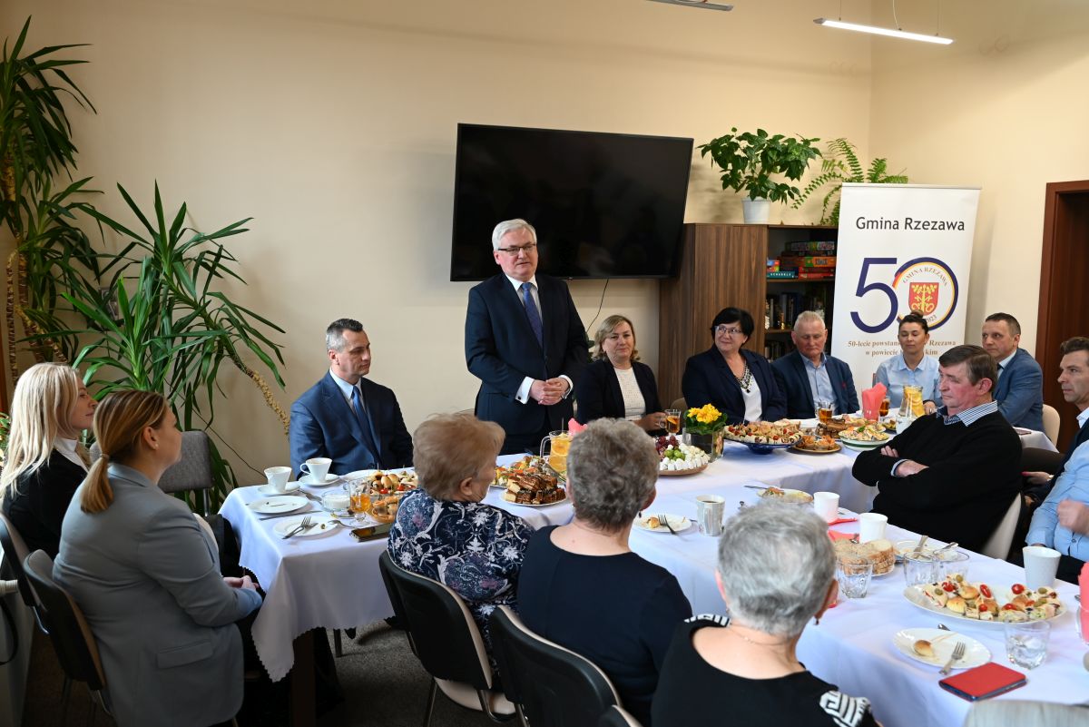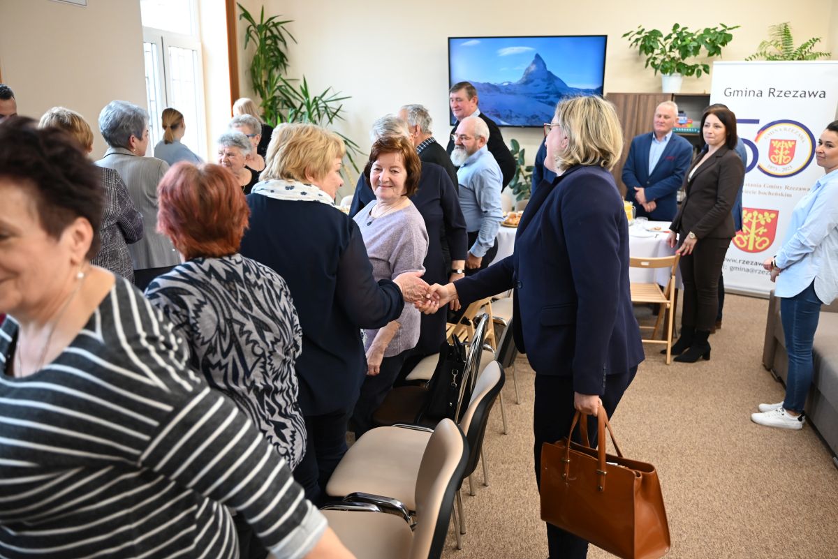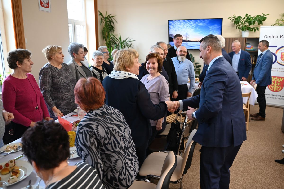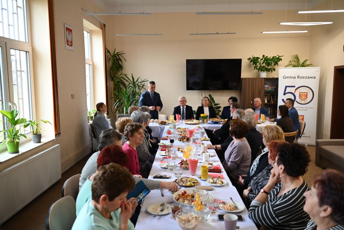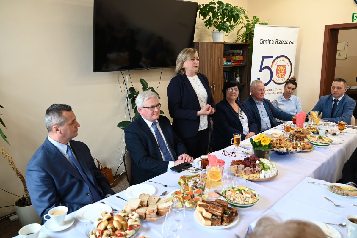 Politycy najpierw złożyli wizytę w budynku Urzędu Gminy, gdzie spotkali się z Wójtem Mariuszem Palejem. Następnie udali się do Klubu Senior+. Zostali tam bardzo ciepło przyjęci przez uczestników klubu, którzy przygotowali dla nich pyszny poczęstunek. Goście byli pod ogromnym wrażeniem tego, jak prężnie działa Klub Senior+ w Rzezawie. Na koniec swojej wizyty w Rzezawie odwiedzili oni także gminną bibliotekę.