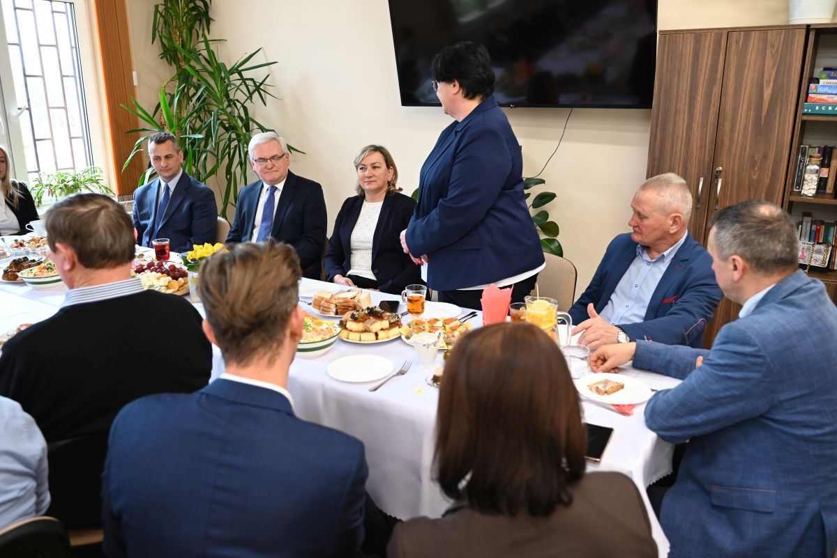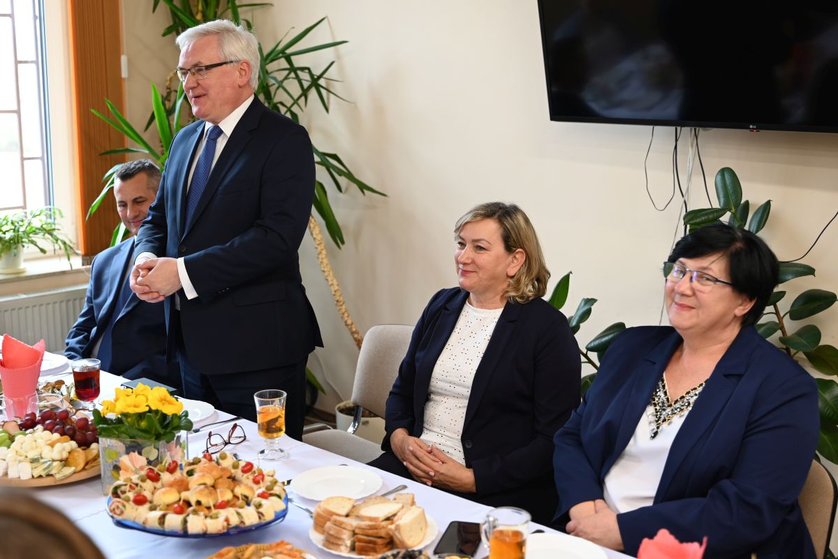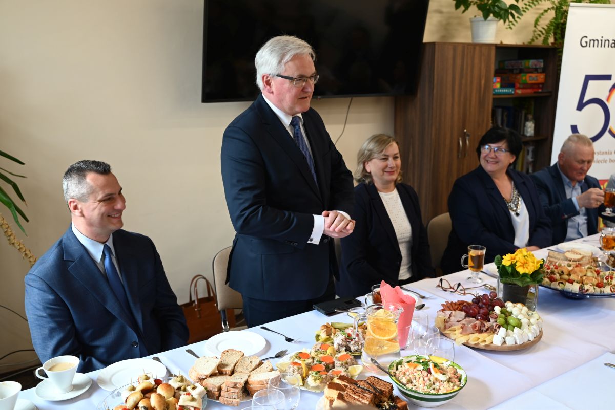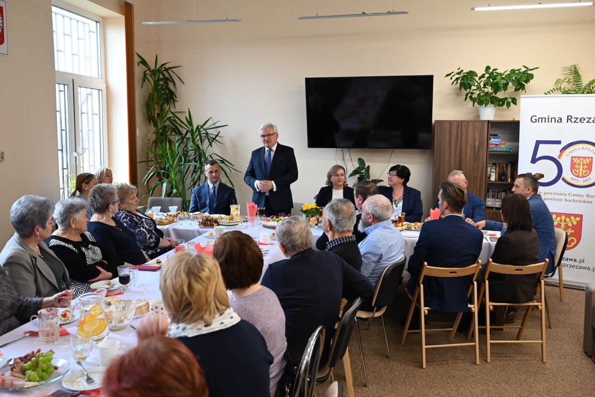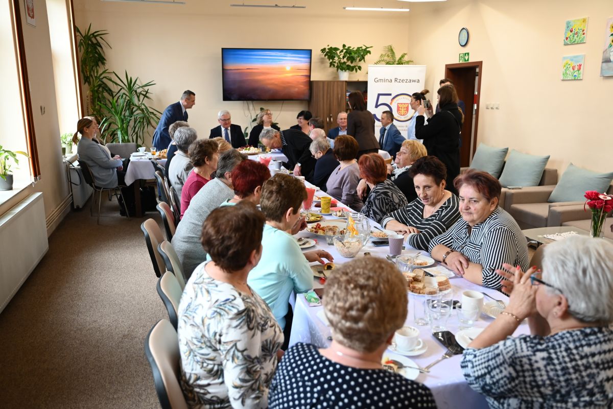 Politycy najpierw złożyli wizytę w budynku Urzędu Gminy, gdzie spotkali się z Wójtem Mariuszem Palejem. Następnie udali się do Klubu Senior+. Zostali tam bardzo ciepło przyjęci przez uczestników klubu, którzy przygotowali dla nich pyszny poczęstunek. Goście byli pod ogromnym wrażeniem tego, jak prężnie działa Klub Senior+ w Rzezawie. Na koniec swojej wizyty w Rzezawie odwiedzili oni także gminną bibliotekę.