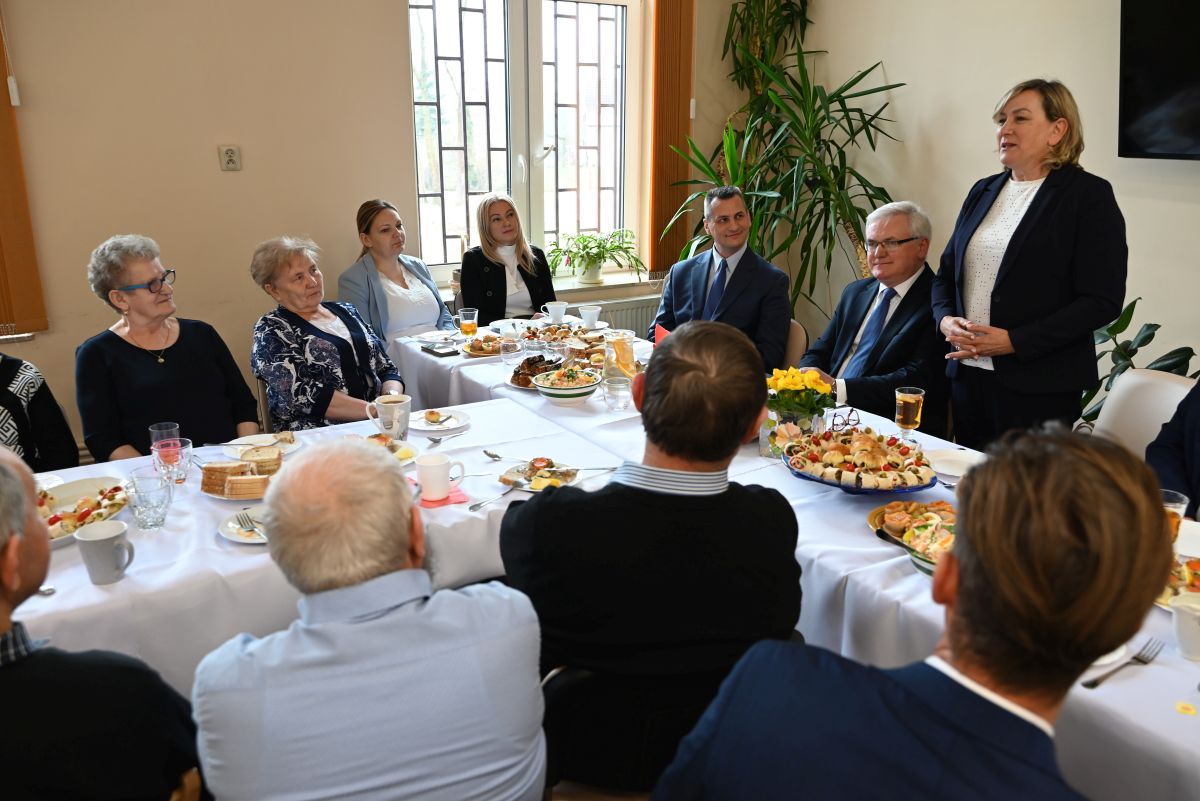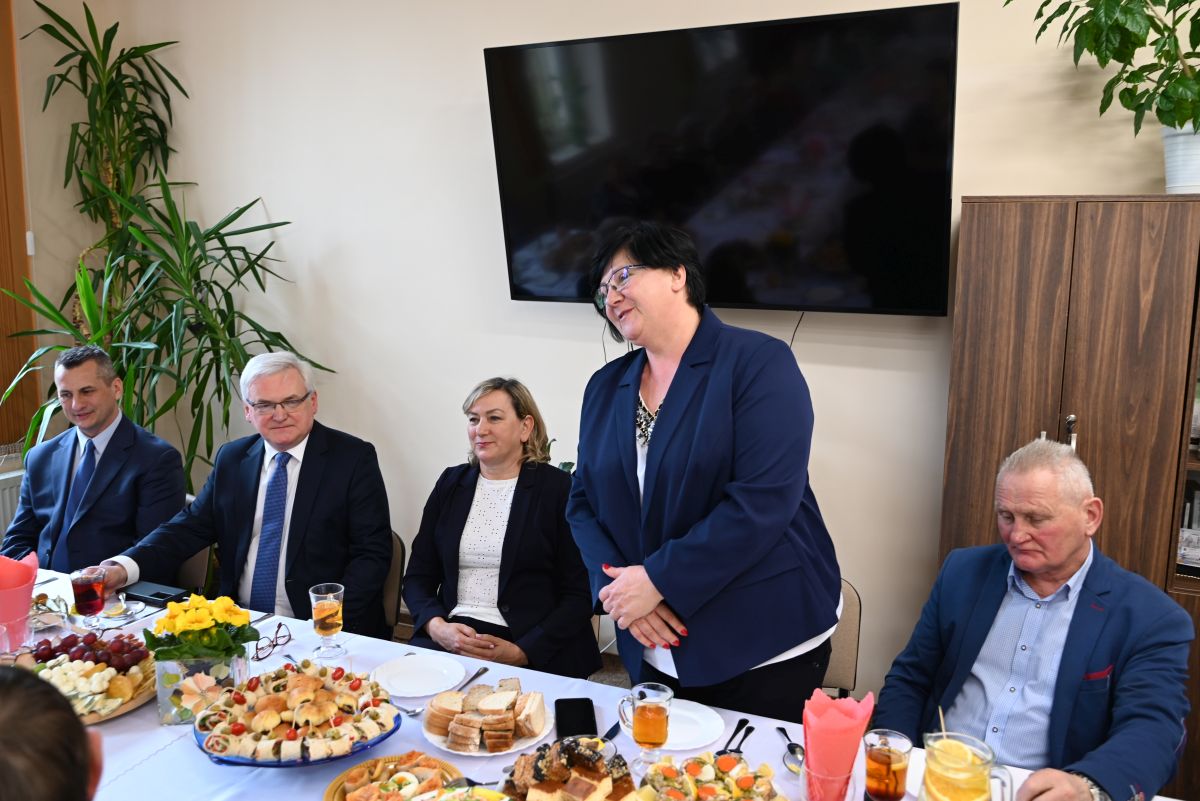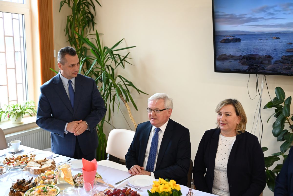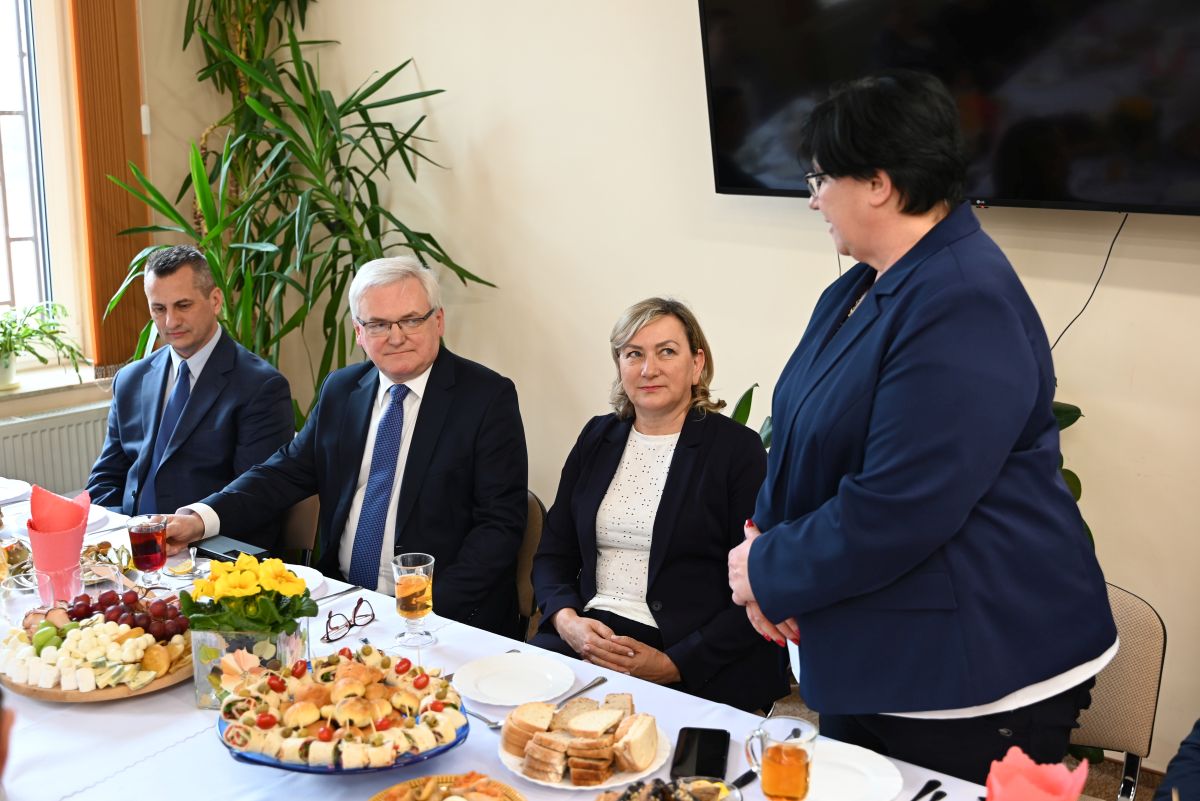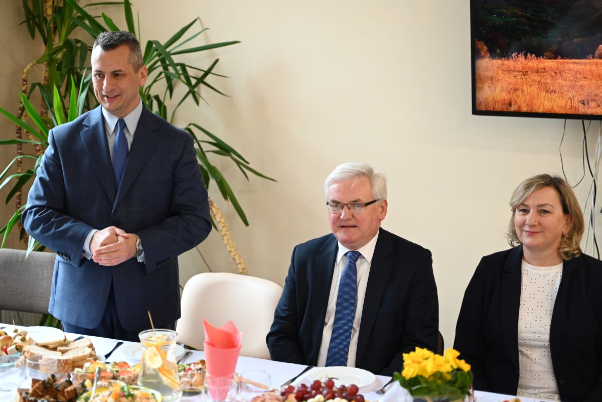 Politycy najpierw złożyli wizytę w budynku Urzędu Gminy, gdzie spotkali się z Wójtem Mariuszem Palejem. Następnie udali się do Klubu Senior+. Zostali tam bardzo ciepło przyjęci przez uczestników klubu, którzy przygotowali dla nich pyszny poczęstunek. Goście byli pod ogromnym wrażeniem tego, jak prężnie działa Klub Senior+ w Rzezawie. Na koniec swojej wizyty w Rzezawie odwiedzili oni także gminną bibliotekę.