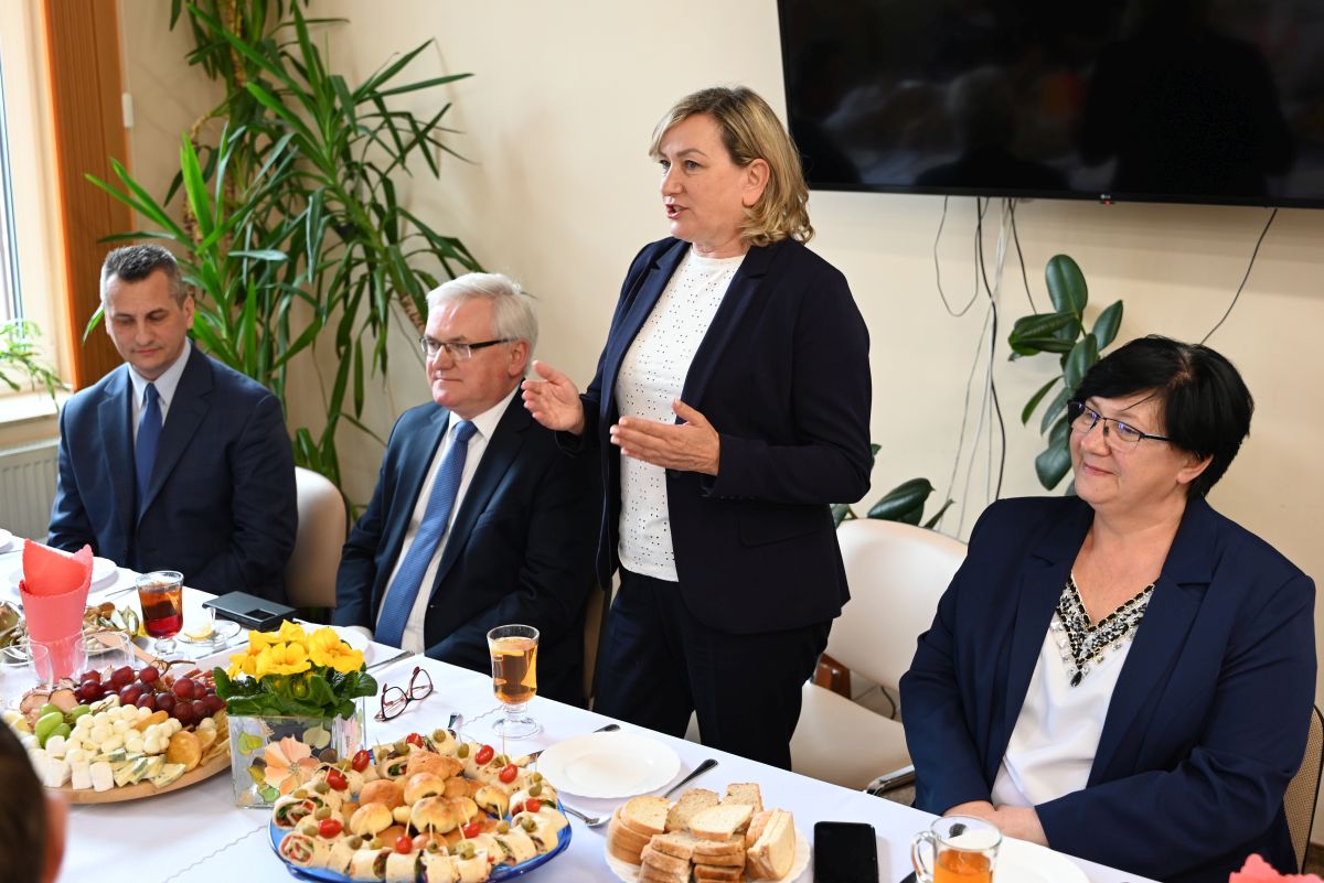 Wizyta Poseł RP Józefy Szczurek-Żelazko i Wicemarszałka Województwa Małopolskiego Józefa Gawrona odbyła się w związku z dotacją w wysokości niespełna 180 tys. zł, jaką Gmina Rzezawa otrzymała niedawno z Programu Rozwoju Obszarów Wiejskich na termomodernizację budynku przy ulicy Kościelnej 6 w Rzezawie, w którym znajduje się Klub Senior+ oraz gminna biblioteka. Chcieli oni osobiście zobaczyć, jak wygląda ten obiekt, który niedawno zyskał już m.in. nowe pokrycie dachowe oraz zagospodarowanie terenu wokół niego (na ten cel Gmina Rzezawa również otrzymała dotację w wysokości 500 tys. zł).