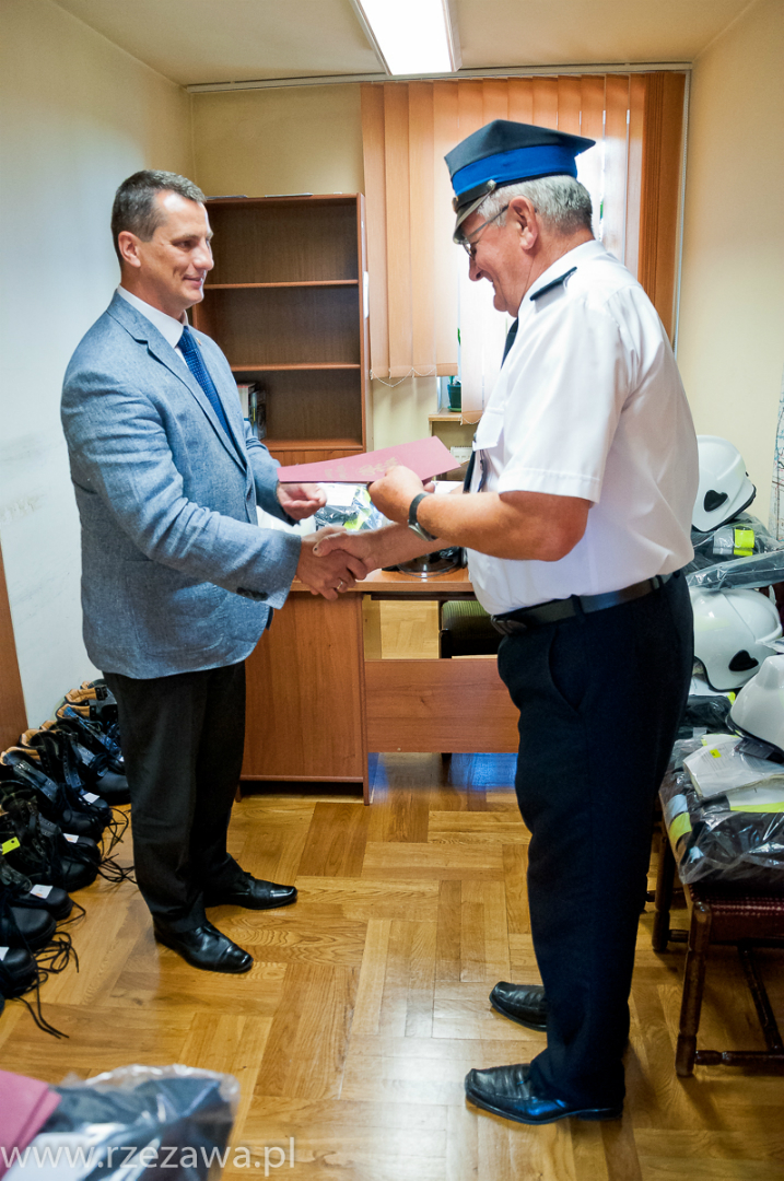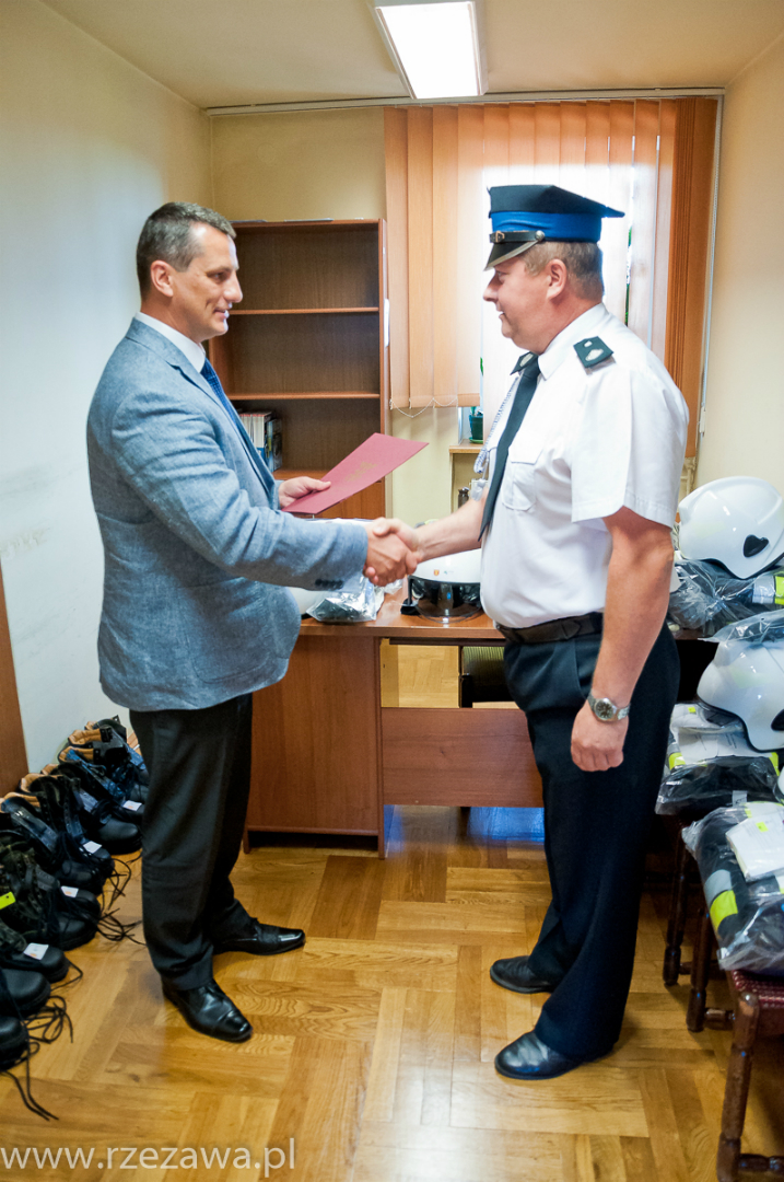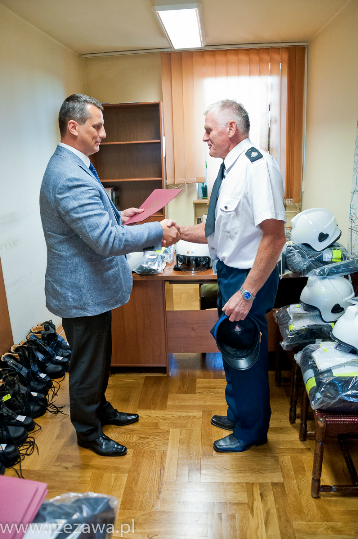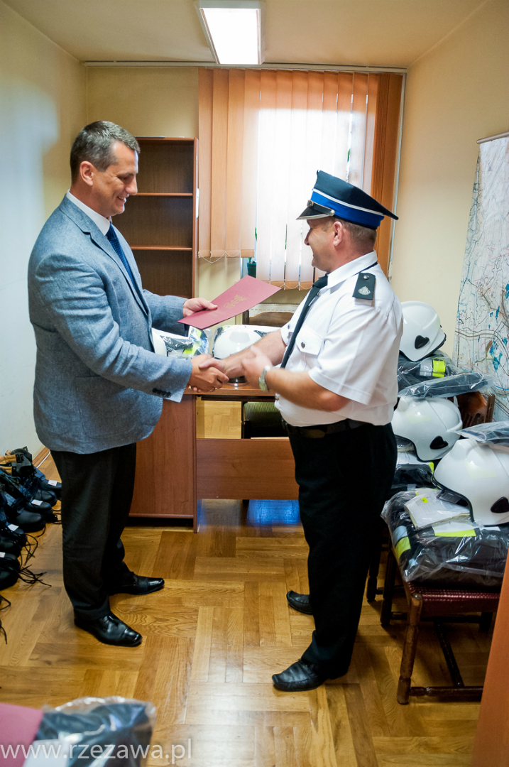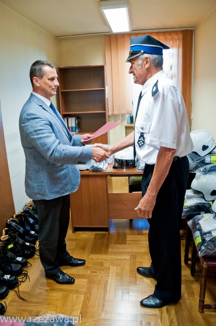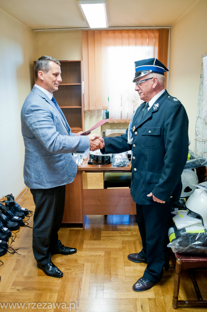 Wójt Gminy Rzezawa Mariusz Palej przekazał komplety profesjonalnego umundurowania bojowego