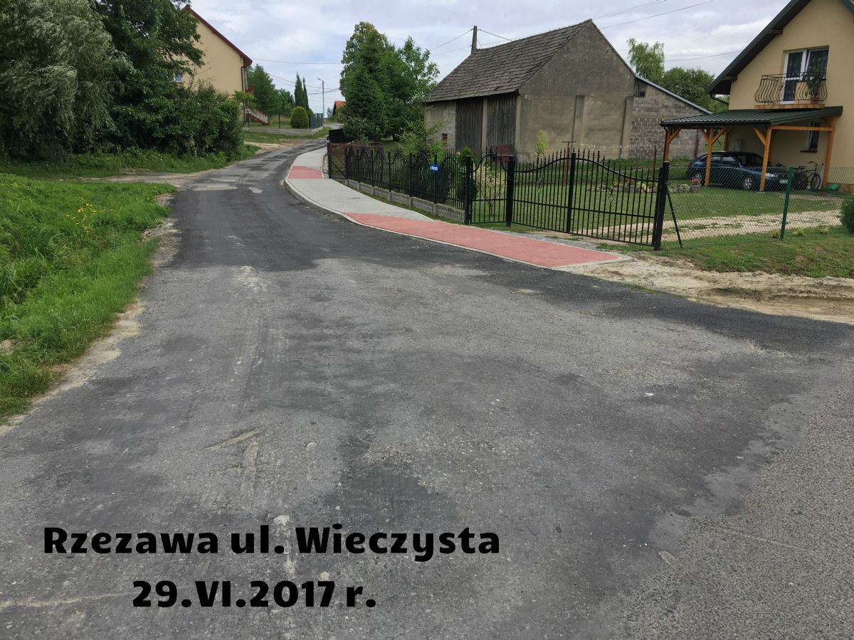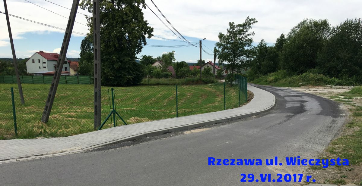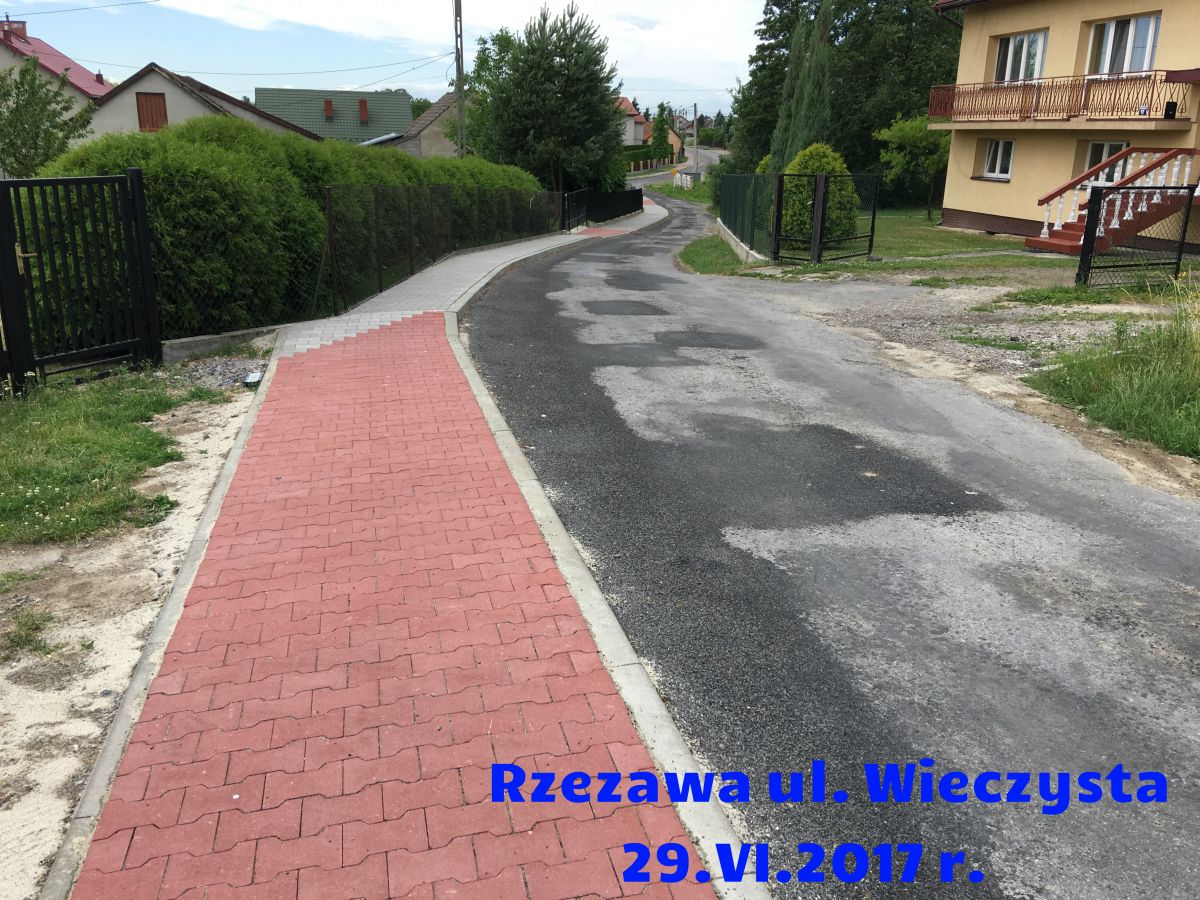 Dokonano również odbioru końcowego budowy chodnika wzdłuż ulicy Wieczystej w Rzezawie. W ramach tego zadania wykonano kolektor deszczowy, studnie kontrolne i rewizyjną, zjazdy do posesji oraz chodnik z kostki brukowej długości 201 mb. Wartość zadania wyniosła 56.300,00 zł. Nowo wybudowane chodniki poprawią bezpieczeństwo pieszych, zwłaszcza dzieci i osób starszych poruszających się po tych ulicach.