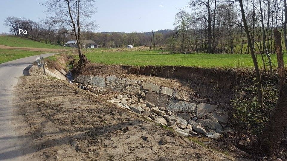 Decyzja o pilnym wykonaniu zadania podyktowana była zabezpieczeniem uszkodzonego odcinka drogi, który uległ zniszczeniu w wyniku intensywnych marcowych opadów deszczu.