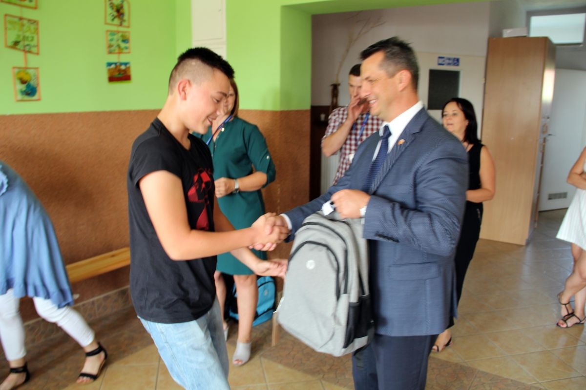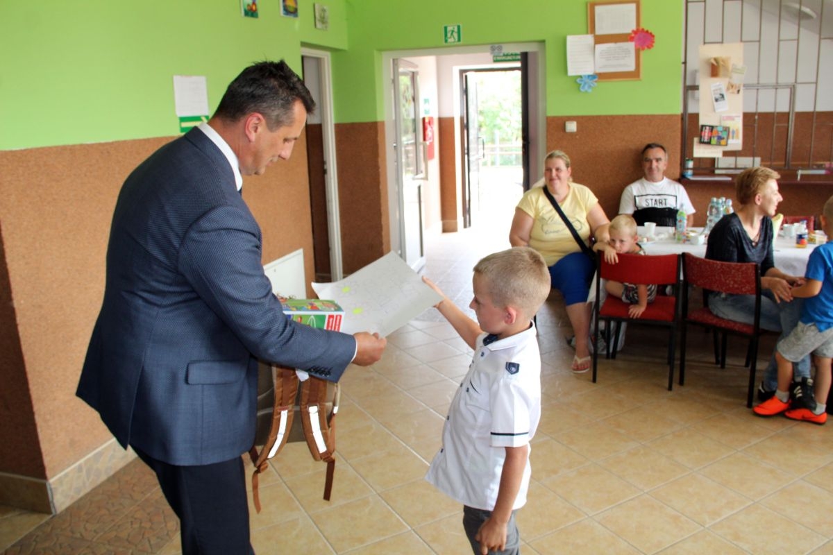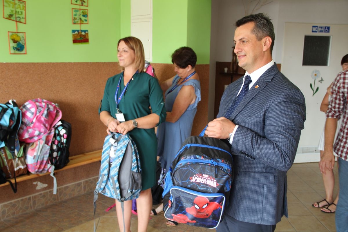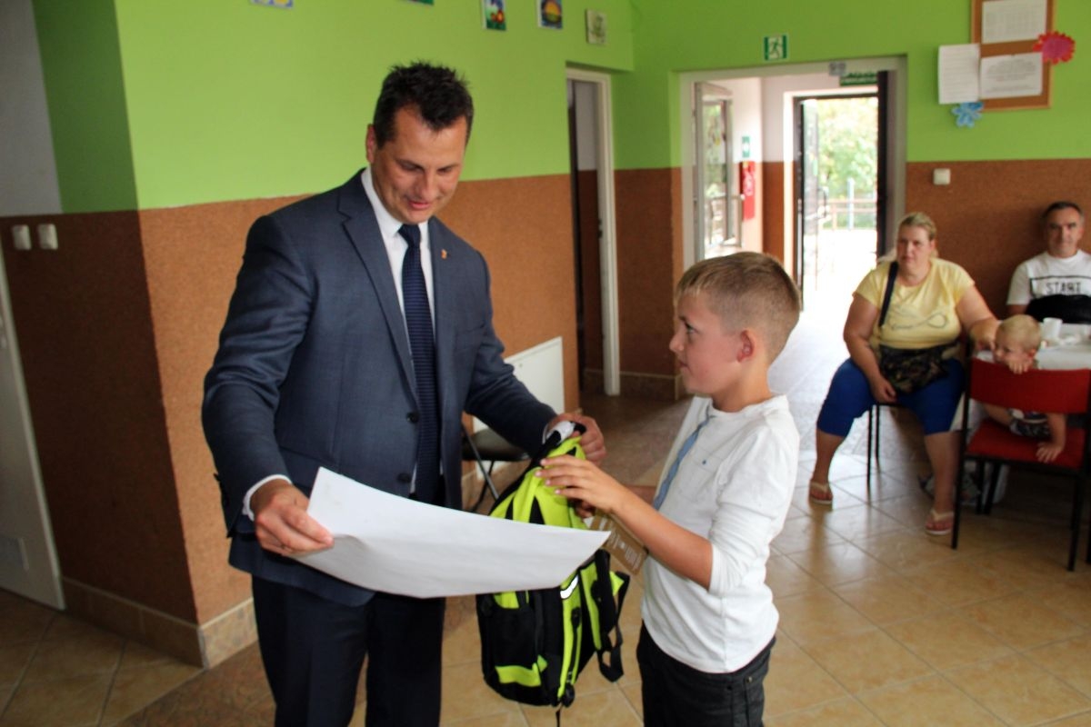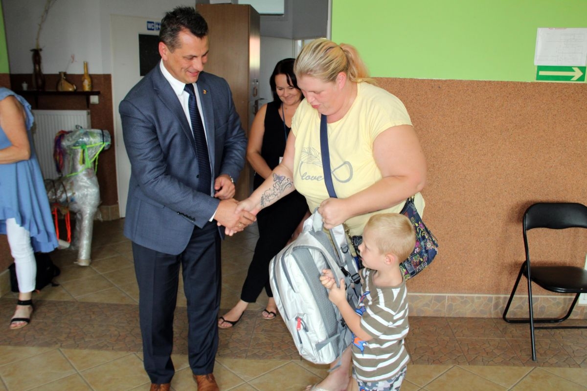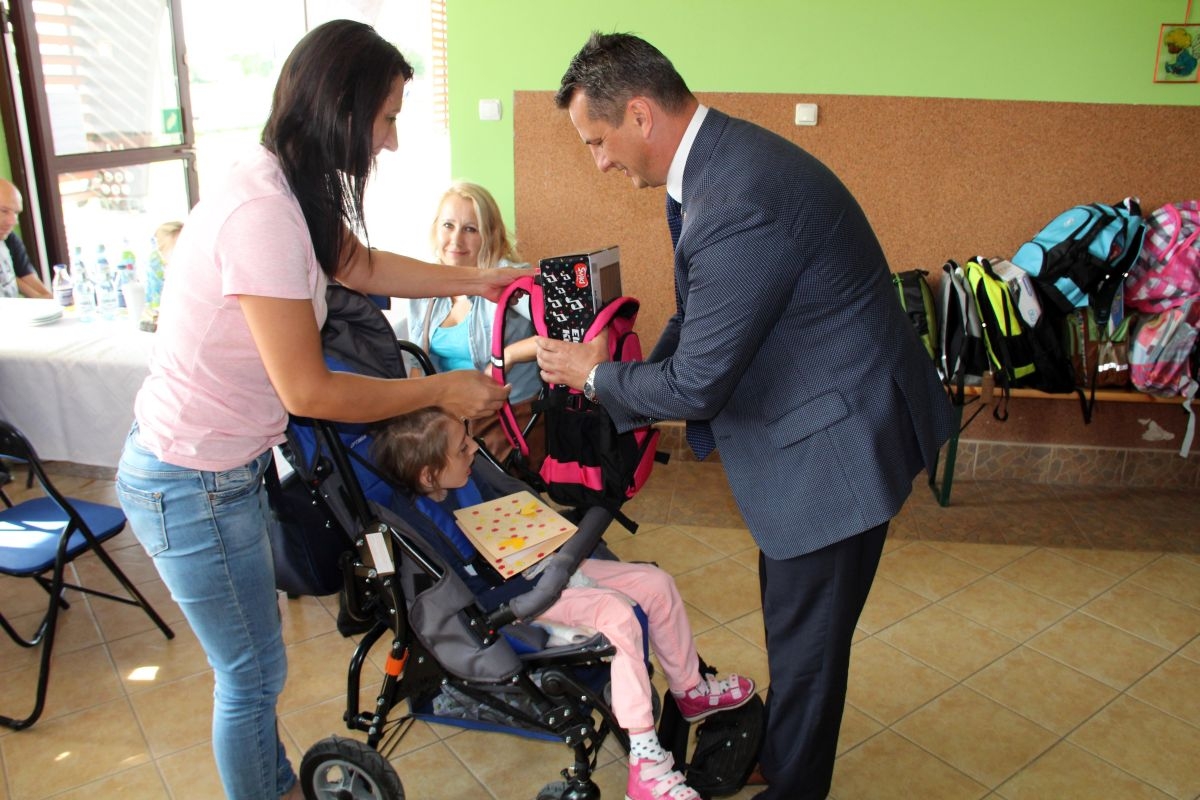 Wójt Gminy Rzezawa Mariusz Palej oraz Kierownik Gminnego Ośrodka Pomocy Społecznej Patrycja Kowalska przekazali wczoraj niepełnosprawnym dzieciom z terenu gminy plecaki wraz z przyborami szkolnymi oraz grami i zabawkami edukacyjnymi wspierającymi ich odpowiedni rozwój.