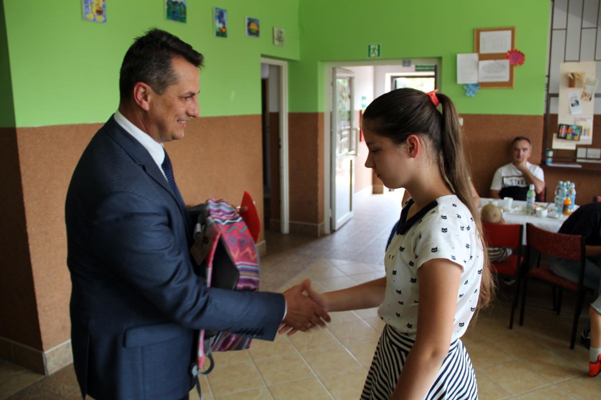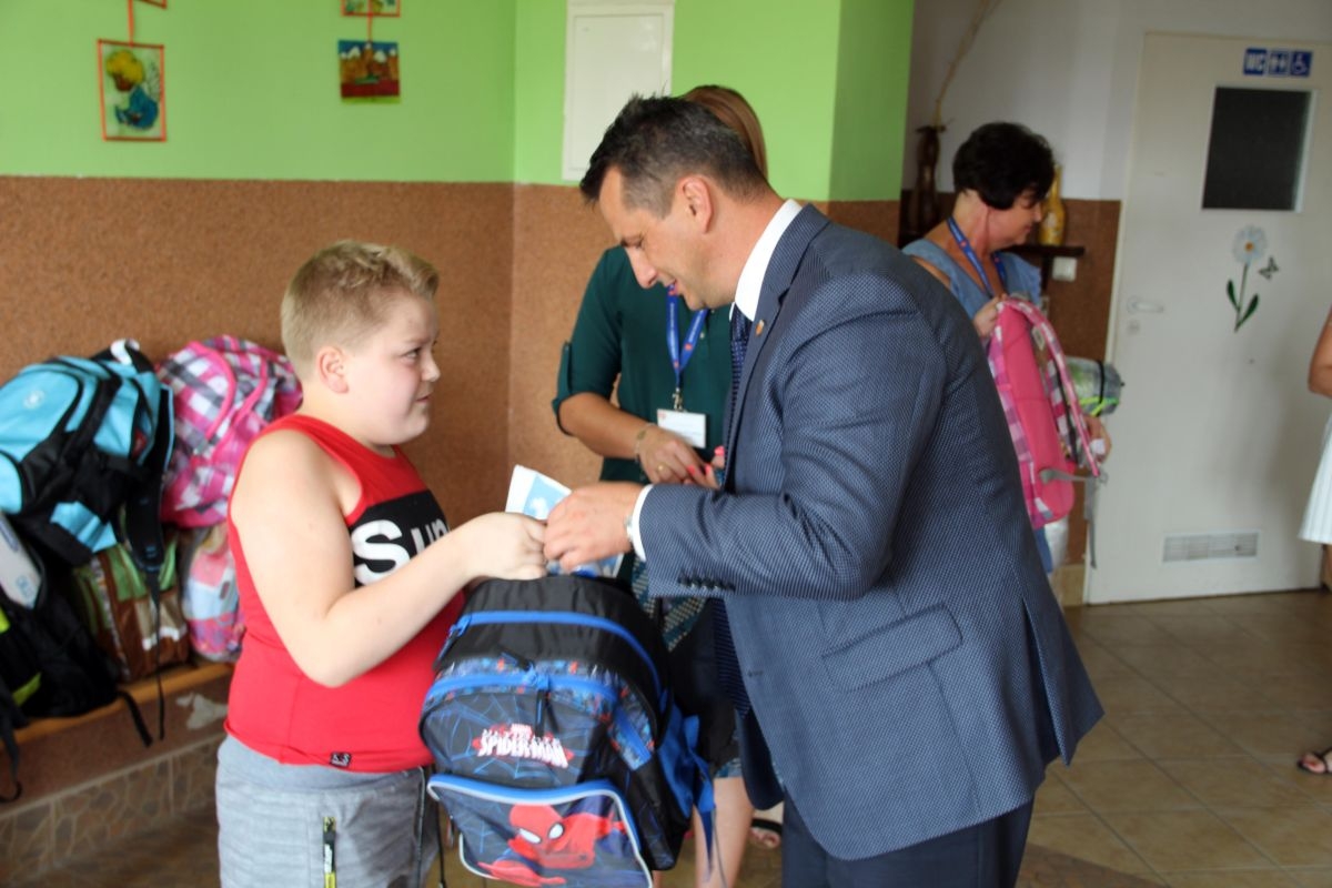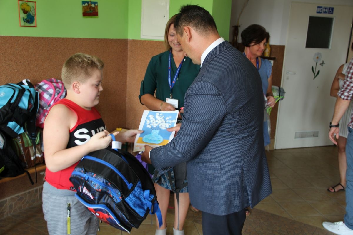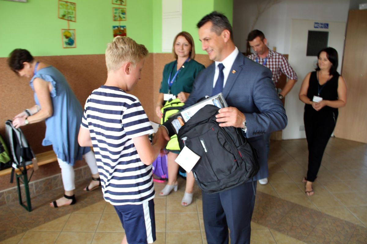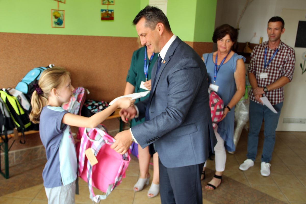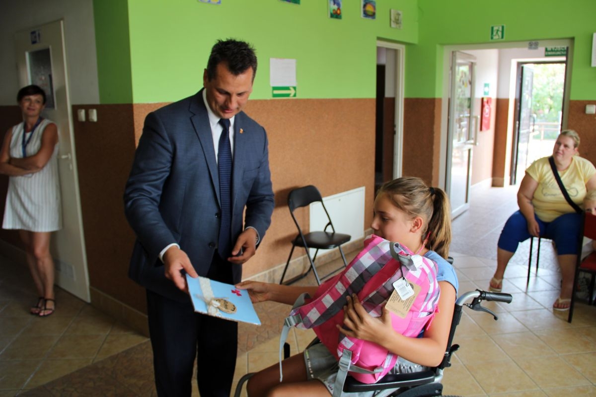 Wójt Gminy Rzezawa Mariusz Palej oraz Kierownik Gminnego Ośrodka Pomocy Społecznej Patrycja Kowalska przekazali wczoraj niepełnosprawnym dzieciom z terenu gminy plecaki wraz z przyborami szkolnymi oraz grami i zabawkami edukacyjnymi wspierającymi ich odpowiedni rozwój.