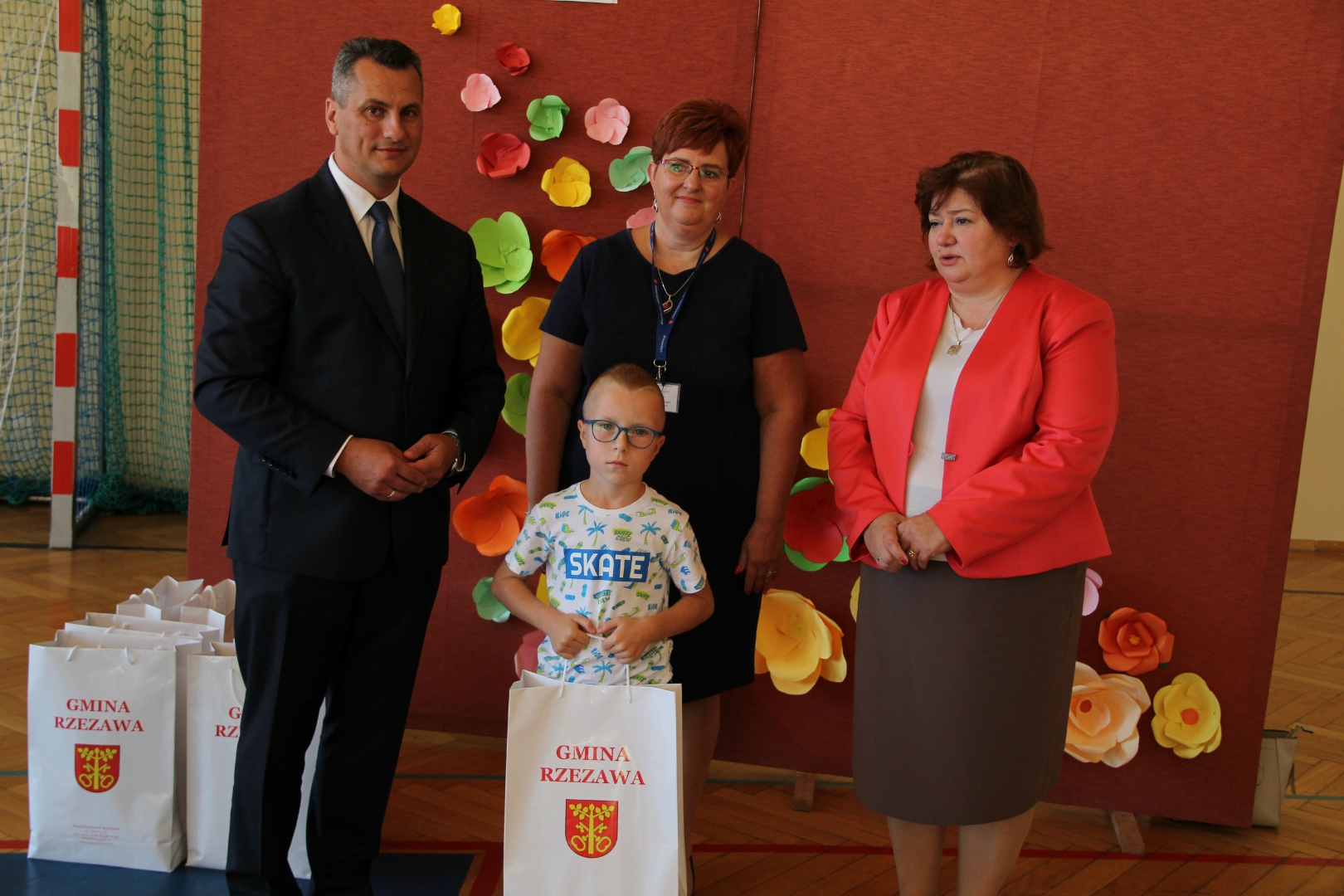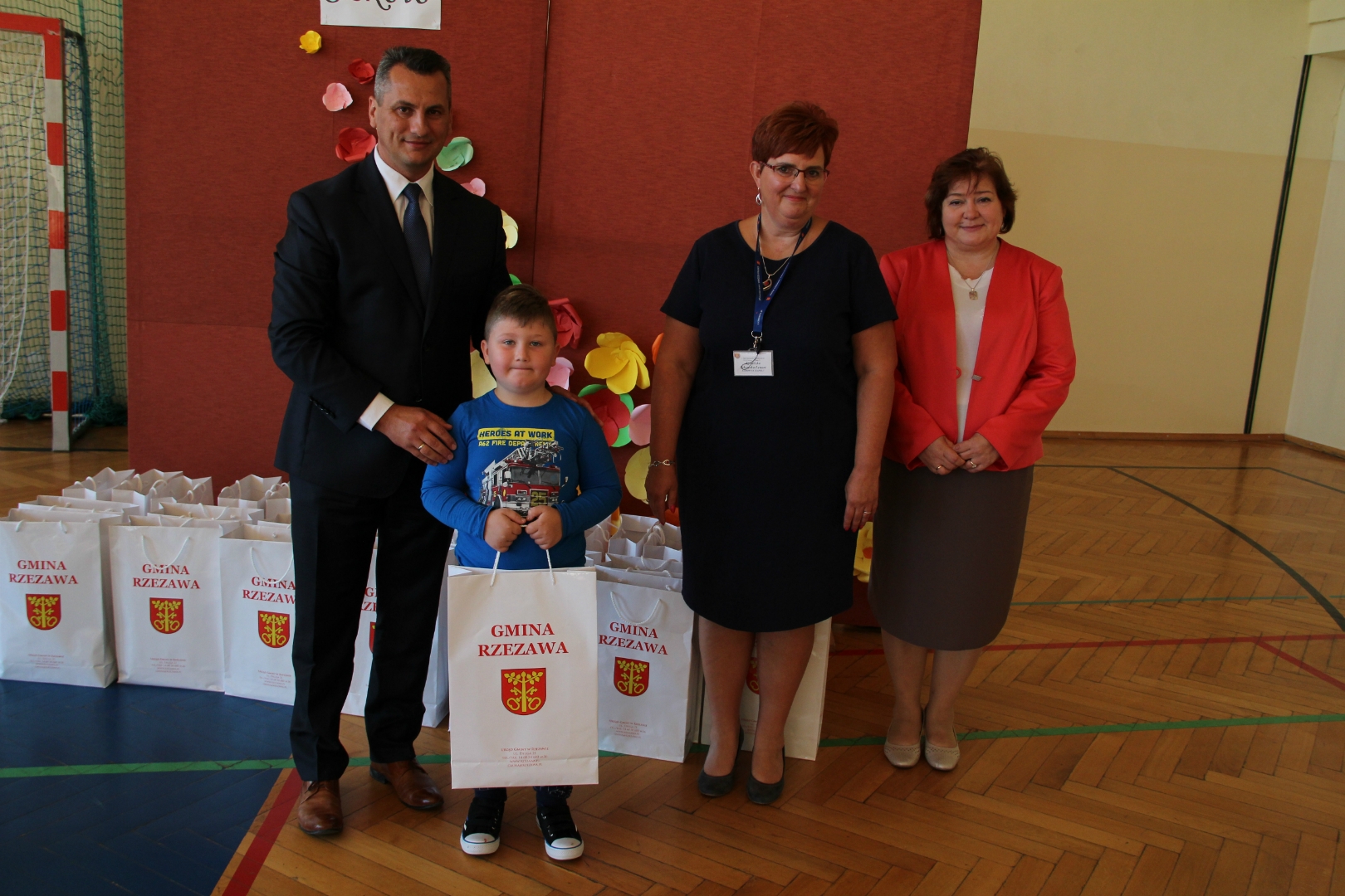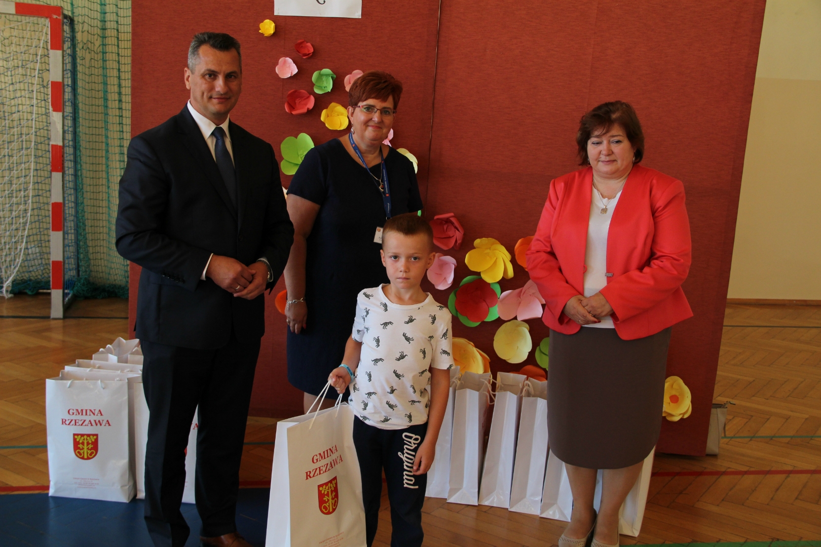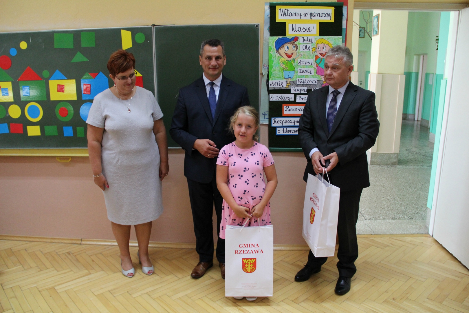 Wyprawki szkolne pierwszoklasistom przy obecności dyrektorów i wychowawców wręczył osobiście Wójt Mariusz Palej. Towarzyszyła mu Kierownik Gminnego Zespołu Obsługi Szkół i Przedszkoli Agnieszka Sękowska – Lenart. Przekazanie paczek z artykułami szkolnymi odbyło się 3 i 4 września br. – Mam nadzieję, że wyprawka, którą otrzymali uczniowie pierwszych klas, pozwoli im na dobry start w szkole. Życzę im, żeby zawsze dobrze się w niej czuli oraz zdobywali najlepsze oceny i pogłębiali swoją wiedzę – podkreśla Wójt Gminy Rzezawa Mariusz Palej.