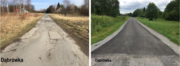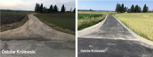 W ramach ostatnich prac związanych z poprawą infrastruktury drogowej wyremontowane zostały następujące odcinki dróg, które zyskały nawierzchnię bitumiczną: