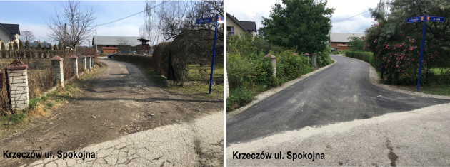 - droga stanowiąca ul. Spokojną w Krzeczowie, wartość inwestycji 41.750,60 zł.