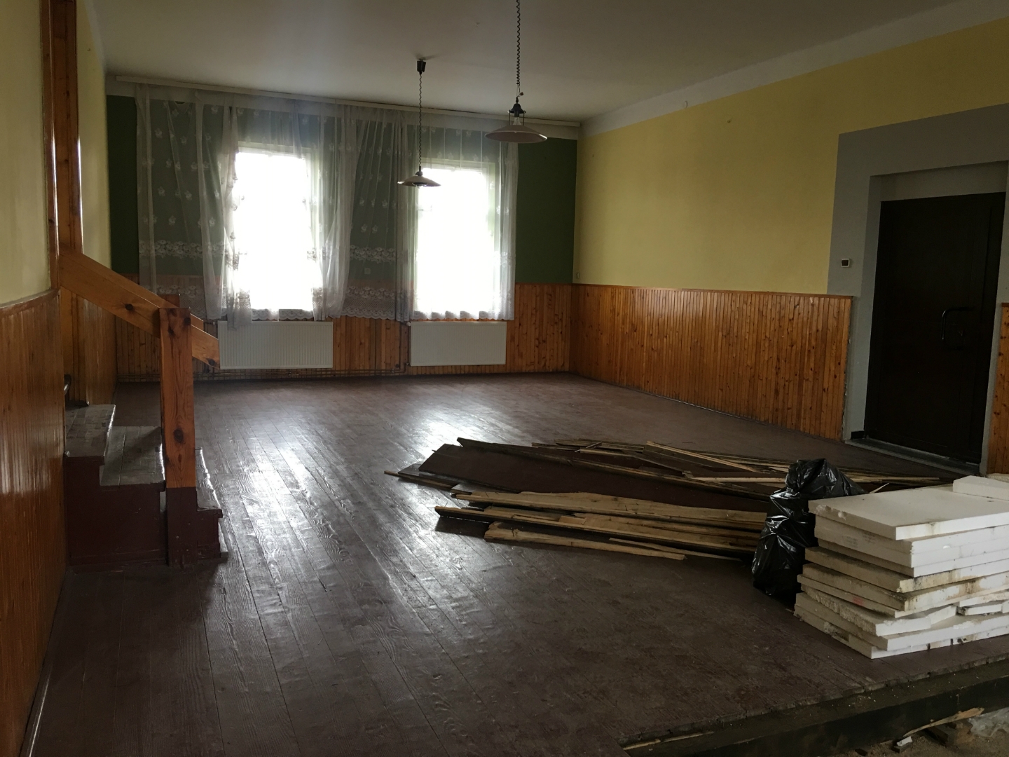 Ściany sali balowej zostały wygładzone oraz wymalowane. Zrobiono tam także podwieszane sufity. Podobnie postąpiono w przypadku pomieszczenia służącego do spotkań mieszkańców.