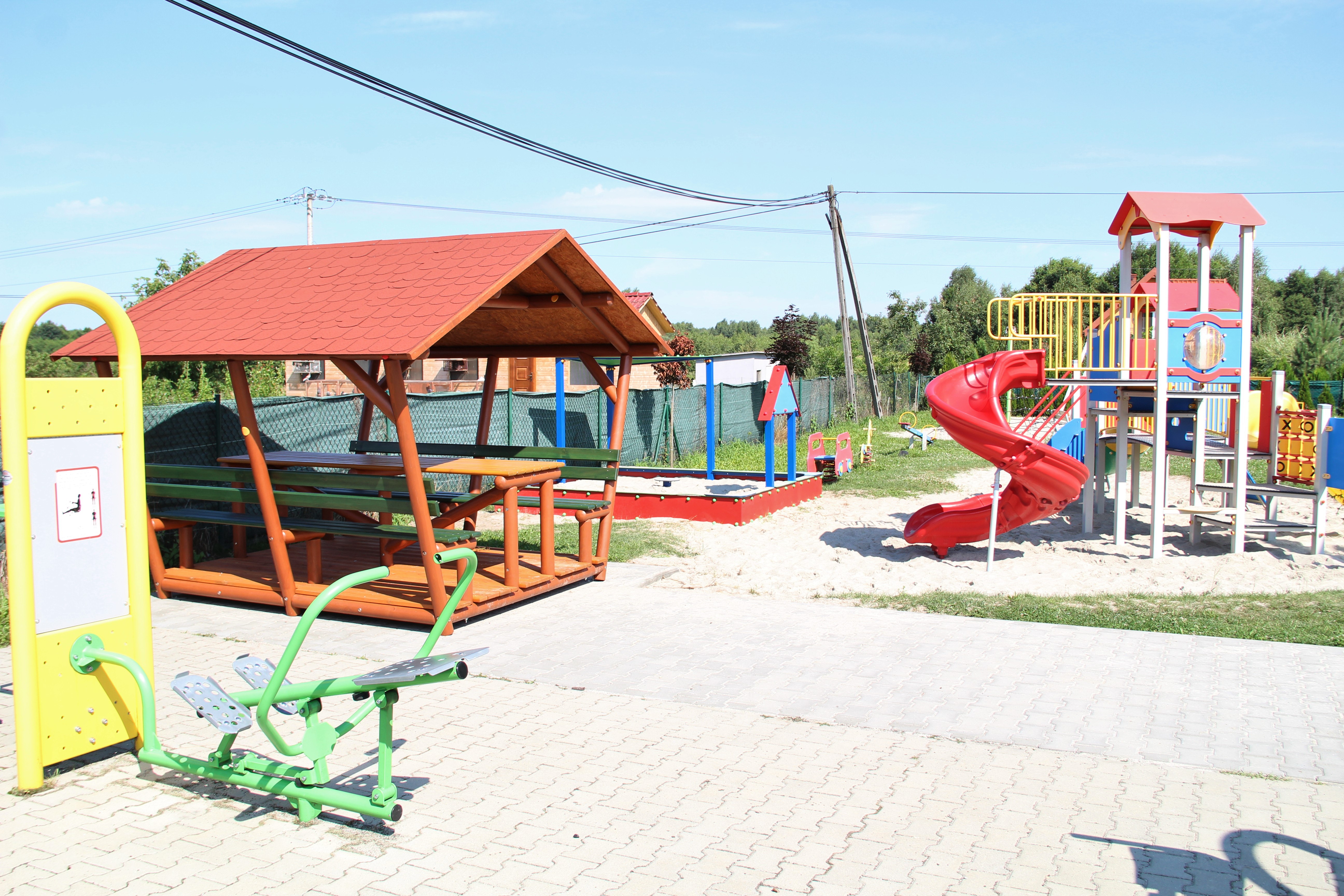 Plac zabaw w Jodłówce zyskał natomiast stylową altanę z ławkami, pod którą została ułożona nawierzchnia z kostki brukowej. Altana będzie służyć do odpoczynku i stanowić schronienie przed słońcem i deszczem. Kolejną nowością na placu zabaw w Jodłówce jest piaskownica z daszkiem.
