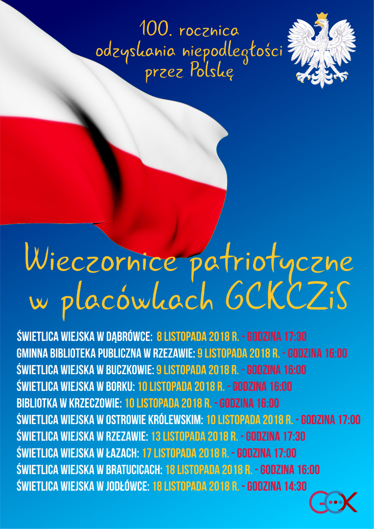 Zapraszamy na Wieczornice Patriotyczne na placówkach GCKCZIS