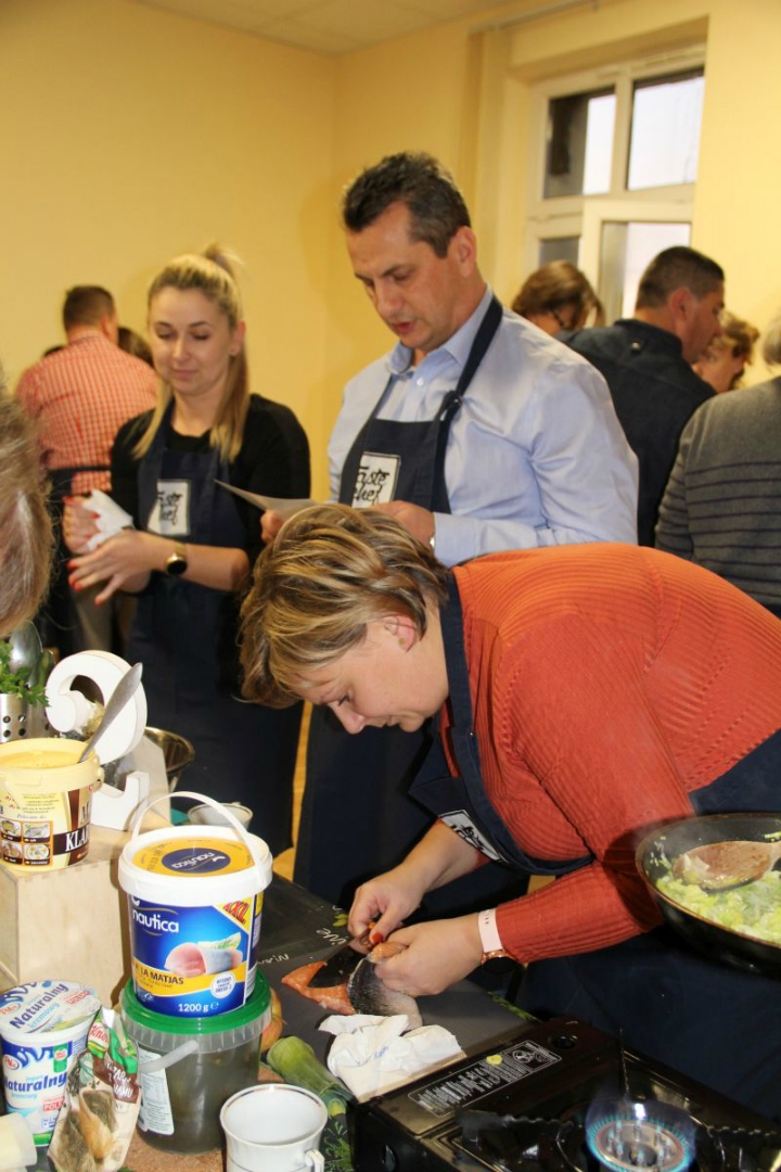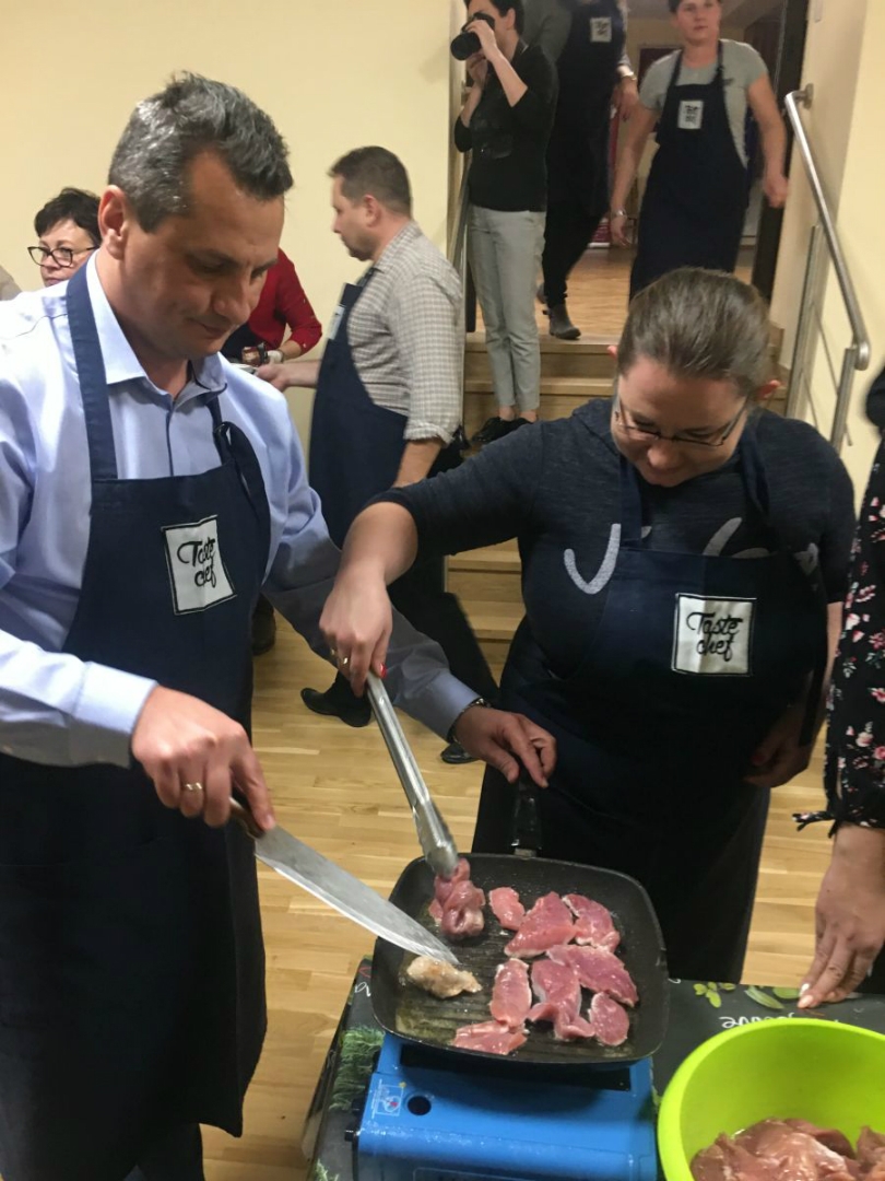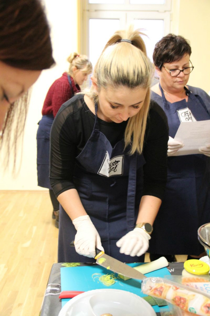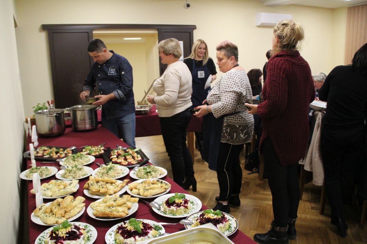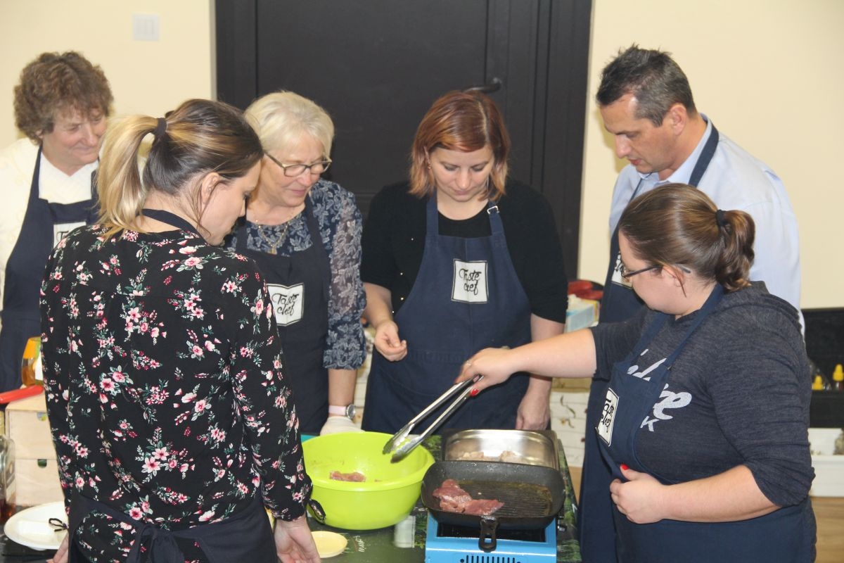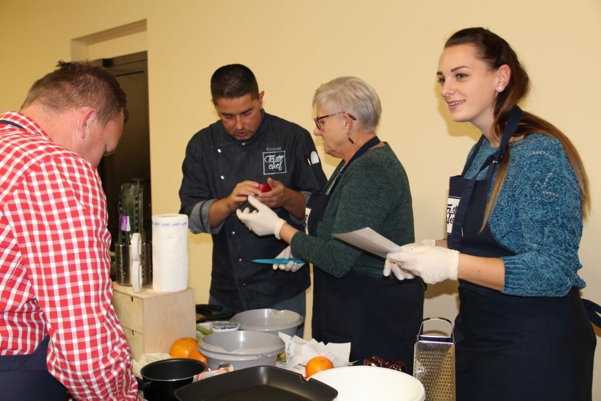 Uczestnicy podzieleni na 6 zespołów, pod czujnym okiem doświadczonych kucharzy z firmy Taste Chef Anna Odroń, Krzysztofa Odronia i Michała Sietnera, przygotowali w sumie 12 potraw. Wśród nich znalazły się m.in. bożonarodzeniowy specjał z soczystych polędwiczek, ryba po florencku, malezyjska zupa Katong laksa z dorszem i papryką, sałatka al a Waldorf, a także kilka deserów. Po kilku godzinach nauki, a przede wszystkim dobrej zabawy przygotowane tego wieczoru potrawy pojawiły się na stołach. Każdy mógł skosztować, nie tylko przez siebie przygotowanych specjałów, ale także dań przyrządzonych przez inne zespoły. Degustacja przygotowanych przystawek, zup, mięs, zapiekanek, sałatek oraz deserów okazała się ucztą dla podniebienia, podczas której uczestnicy mieli okazję poznać nowe, nieznane smaki. Na koniec uczestnicy warsztatów otrzymali przepisy na 12 potraw, które przygotowali podczas tego kulinarnego wieczoru.