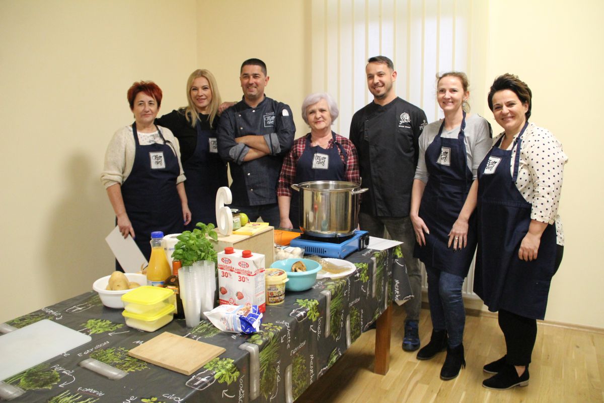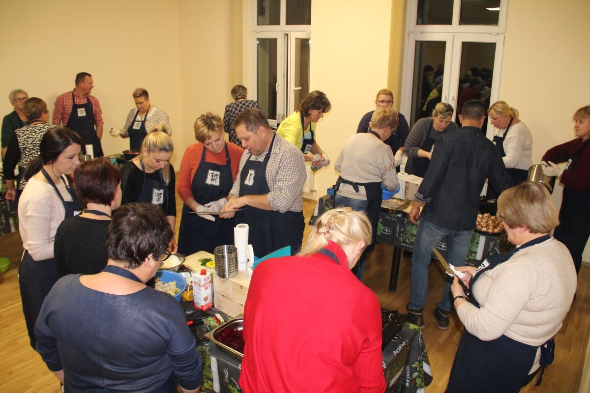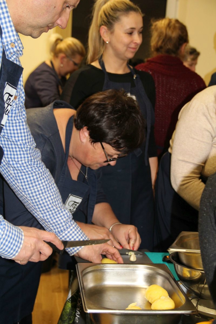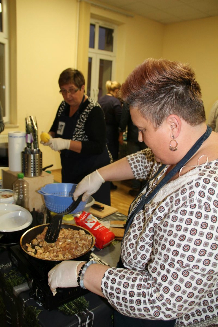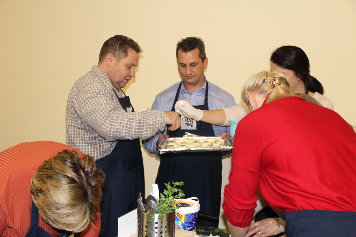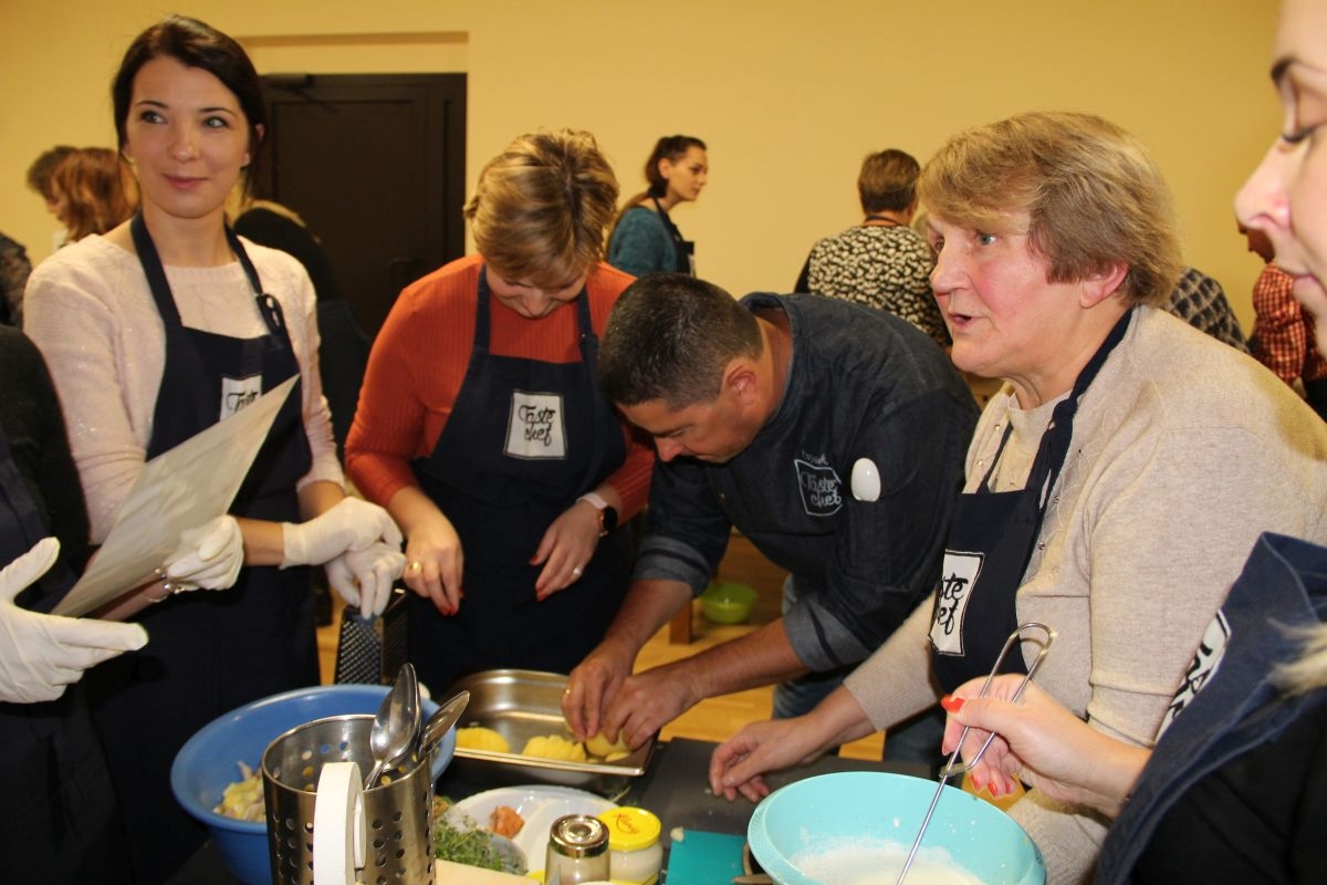 Uczestnicy podzieleni na 6 zespołów, pod czujnym okiem doświadczonych kucharzy z firmy Taste Chef Anna Odroń, Krzysztofa Odronia i Michała Sietnera, przygotowali w sumie 12 potraw. Wśród nich znalazły się m.in. bożonarodzeniowy specjał z soczystych polędwiczek, ryba po florencku, malezyjska zupa Katong laksa z dorszem i papryką, sałatka al a Waldorf, a także kilka deserów. Po kilku godzinach nauki, a przede wszystkim dobrej zabawy przygotowane tego wieczoru potrawy pojawiły się na stołach. Każdy mógł skosztować, nie tylko przez siebie przygotowanych specjałów, ale także dań przyrządzonych przez inne zespoły. Degustacja przygotowanych przystawek, zup, mięs, zapiekanek, sałatek oraz deserów okazała się ucztą dla podniebienia, podczas której uczestnicy mieli okazję poznać nowe, nieznane smaki. Na koniec uczestnicy warsztatów otrzymali przepisy na 12 potraw, które przygotowali podczas tego kulinarnego wieczoru.
