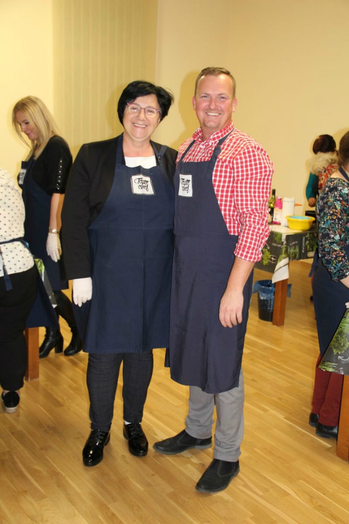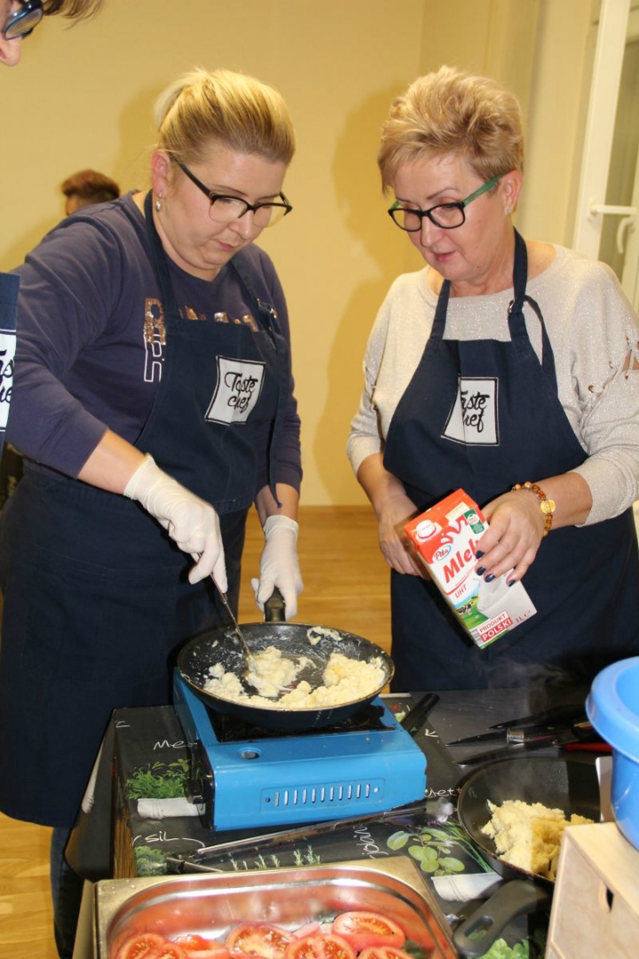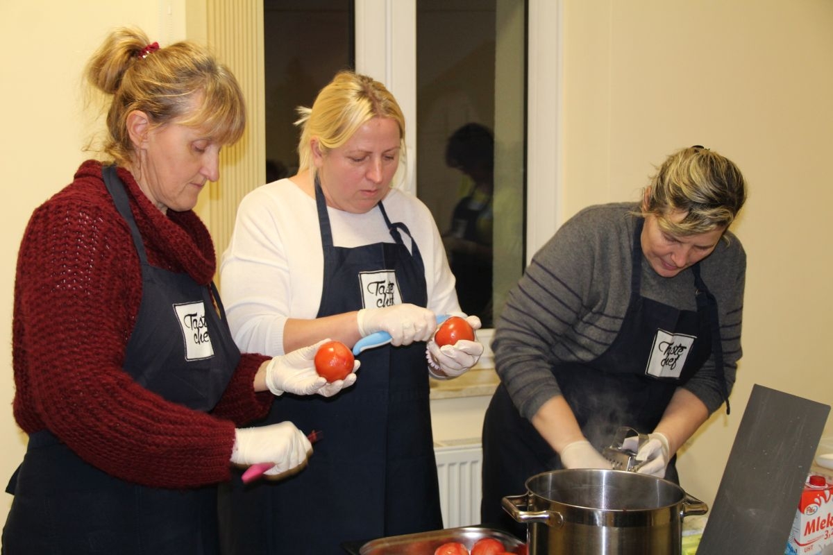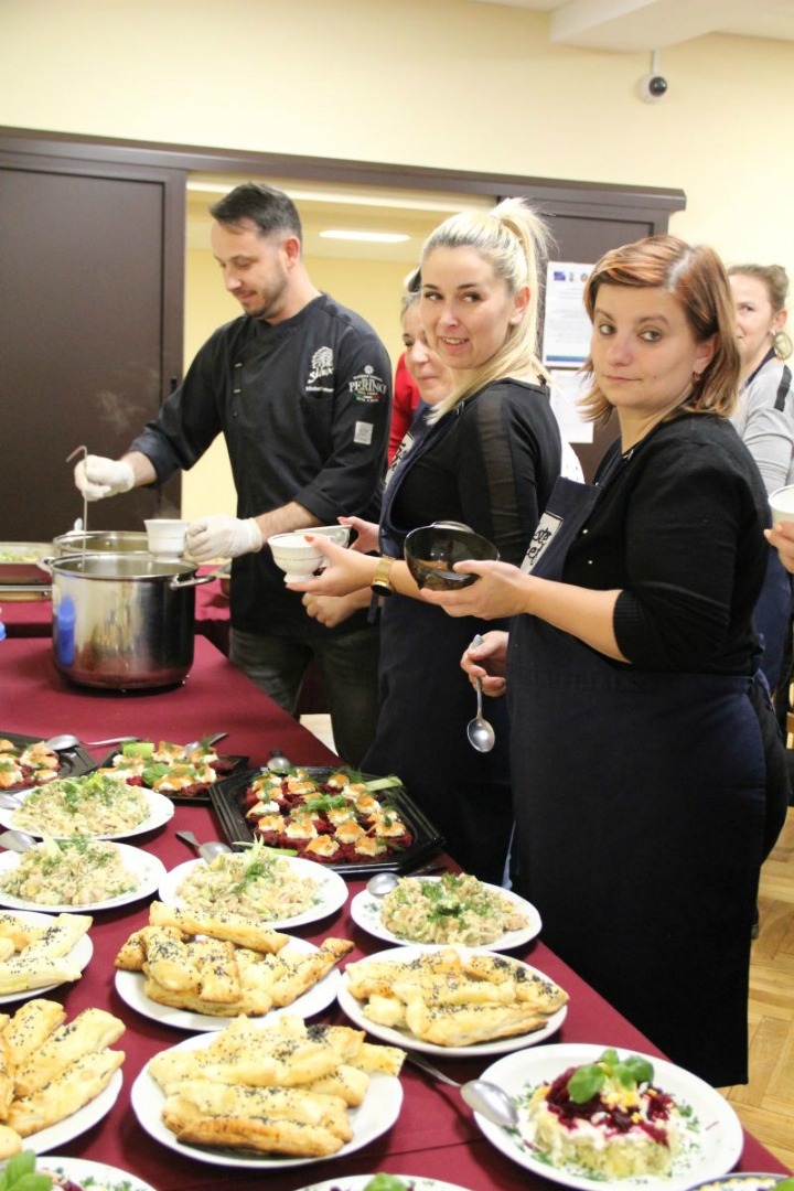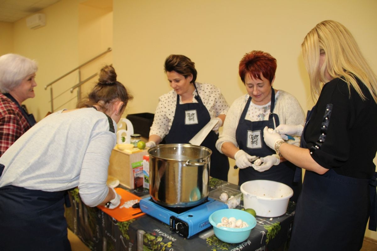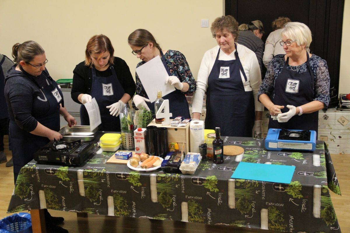 Uczestnicy podzieleni na 6 zespołów, pod czujnym okiem doświadczonych kucharzy z firmy Taste Chef Anna Odroń, Krzysztofa Odronia i Michała Sietnera, przygotowali w sumie 12 potraw. Wśród nich znalazły się m.in. bożonarodzeniowy specjał z soczystych polędwiczek, ryba po florencku, malezyjska zupa Katong laksa z dorszem i papryką, sałatka al a Waldorf, a także kilka deserów. Po kilku godzinach nauki, a przede wszystkim dobrej zabawy przygotowane tego wieczoru potrawy pojawiły się na stołach. Każdy mógł skosztować, nie tylko przez siebie przygotowanych specjałów, ale także dań przyrządzonych przez inne zespoły. Degustacja przygotowanych przystawek, zup, mięs, zapiekanek, sałatek oraz deserów okazała się ucztą dla podniebienia, podczas której uczestnicy mieli okazję poznać nowe, nieznane smaki. Na koniec uczestnicy warsztatów otrzymali przepisy na 12 potraw, które przygotowali podczas tego kulinarnego wieczoru.