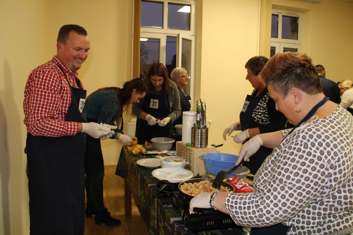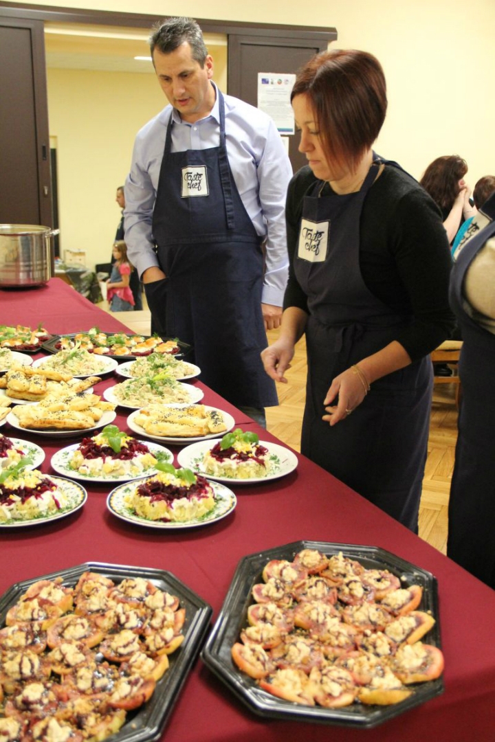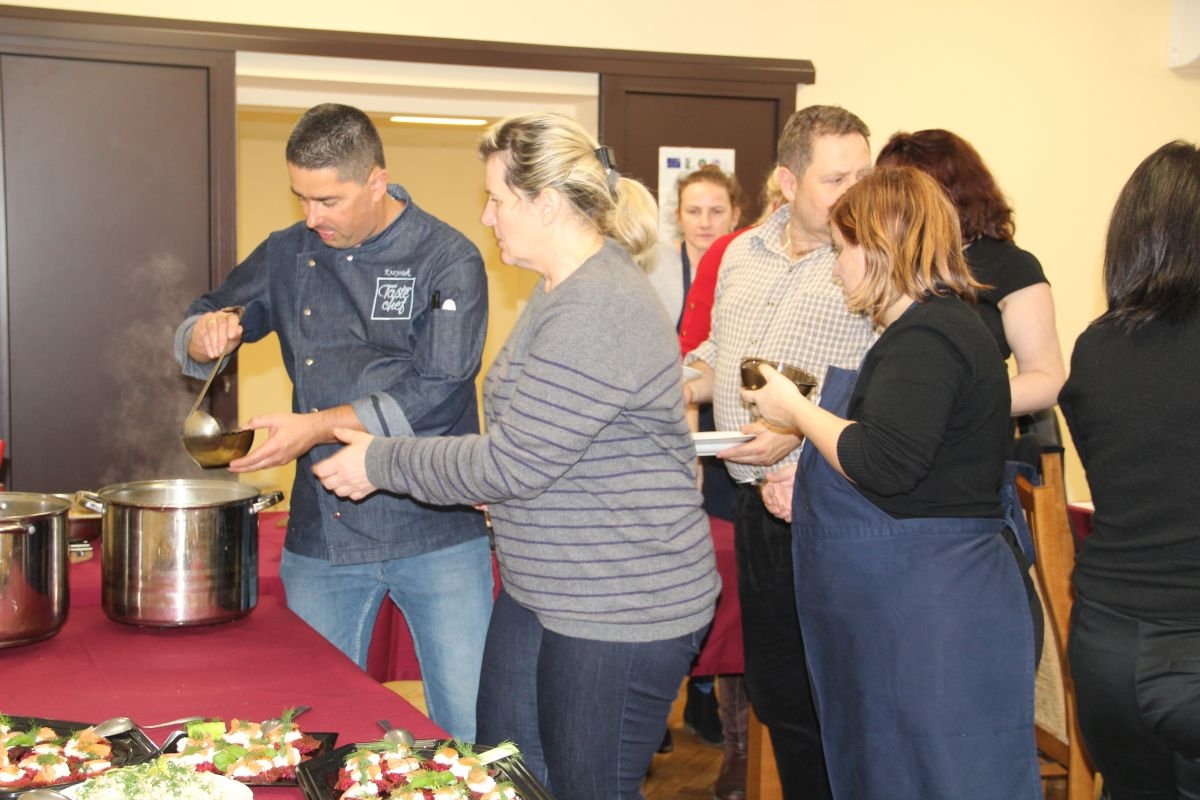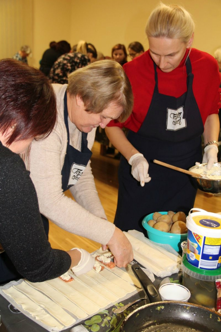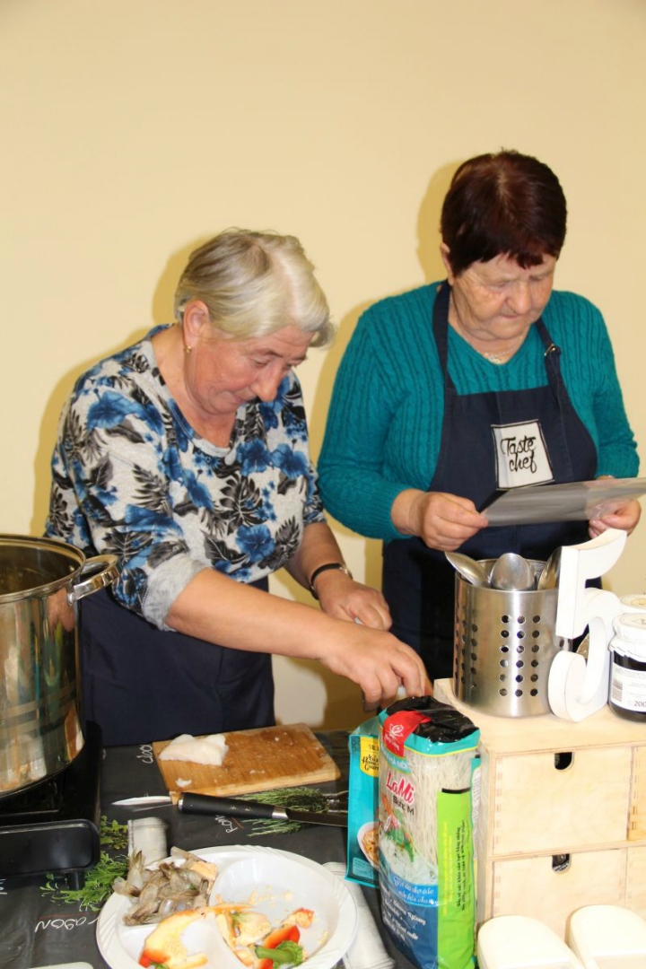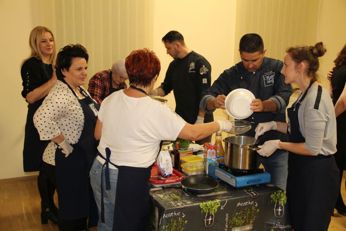Uczestnicy podzieleni na 6 zespołów, pod czujnym okiem doświadczonych kucharzy z firmy Taste Chef Anna Odroń, Krzysztofa Odronia i Michała Sietnera, przygotowali w sumie 12 potraw. Wśród nich znalazły się m.in. bożonarodzeniowy specjał z soczystych polędwiczek, ryba po florencku, malezyjska zupa Katong laksa z dorszem i papryką, sałatka al a Waldorf, a także kilka deserów. Po kilku godzinach nauki, a przede wszystkim dobrej zabawy przygotowane tego wieczoru potrawy pojawiły się na stołach. Każdy mógł skosztować, nie tylko przez siebie przygotowanych specjałów, ale także dań przyrządzonych przez inne zespoły. Degustacja przygotowanych przystawek, zup, mięs, zapiekanek, sałatek oraz deserów okazała się ucztą dla podniebienia, podczas której uczestnicy mieli okazję poznać nowe, nieznane smaki. Na koniec uczestnicy warsztatów otrzymali przepisy na 12 potraw, które przygotowali podczas tego kulinarnego wieczoru.