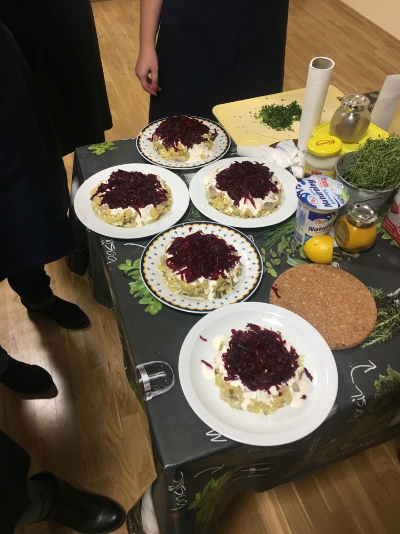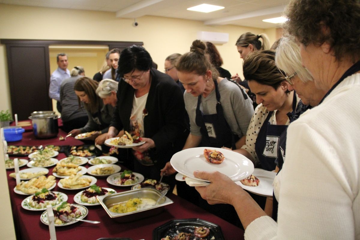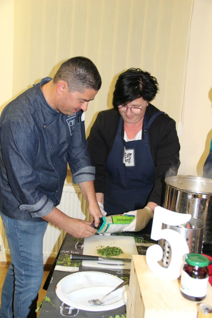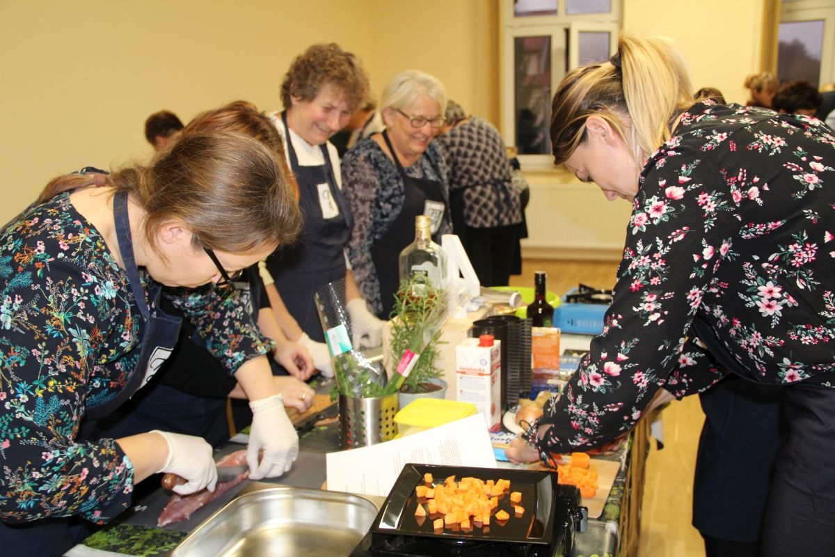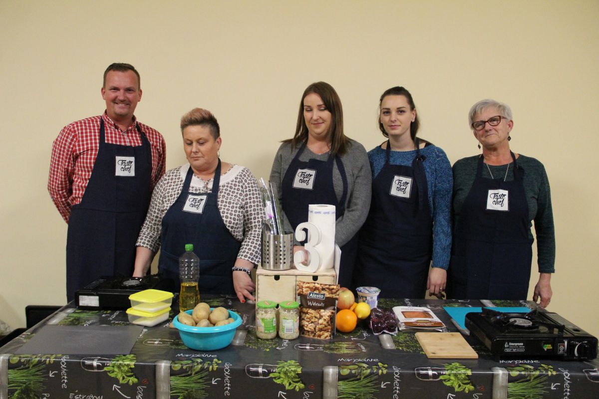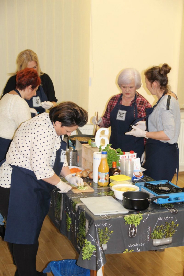 Uczestnicy podzieleni na 6 zespołów, pod czujnym okiem doświadczonych kucharzy z firmy Taste Chef Anna Odroń, Krzysztofa Odronia i Michała Sietnera, przygotowali w sumie 12 potraw. Wśród nich znalazły się m.in. bożonarodzeniowy specjał z soczystych polędwiczek, ryba po florencku, malezyjska zupa Katong laksa z dorszem i papryką, sałatka al a Waldorf, a także kilka deserów. Po kilku godzinach nauki, a przede wszystkim dobrej zabawy przygotowane tego wieczoru potrawy pojawiły się na stołach. Każdy mógł skosztować, nie tylko przez siebie przygotowanych specjałów, ale także dań przyrządzonych przez inne zespoły. Degustacja przygotowanych przystawek, zup, mięs, zapiekanek, sałatek oraz deserów okazała się ucztą dla podniebienia, podczas której uczestnicy mieli okazję poznać nowe, nieznane smaki. Na koniec uczestnicy warsztatów otrzymali przepisy na 12 potraw, które przygotowali podczas tego kulinarnego wieczoru.