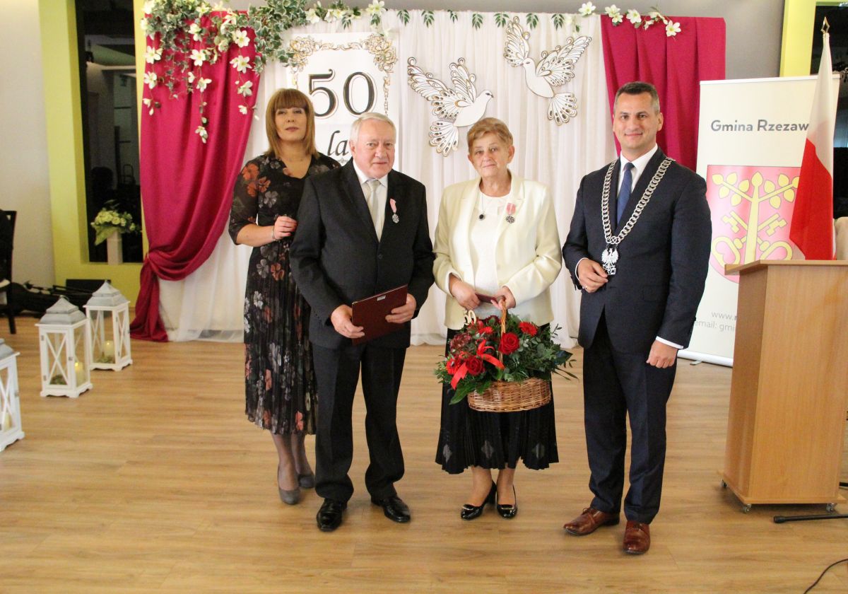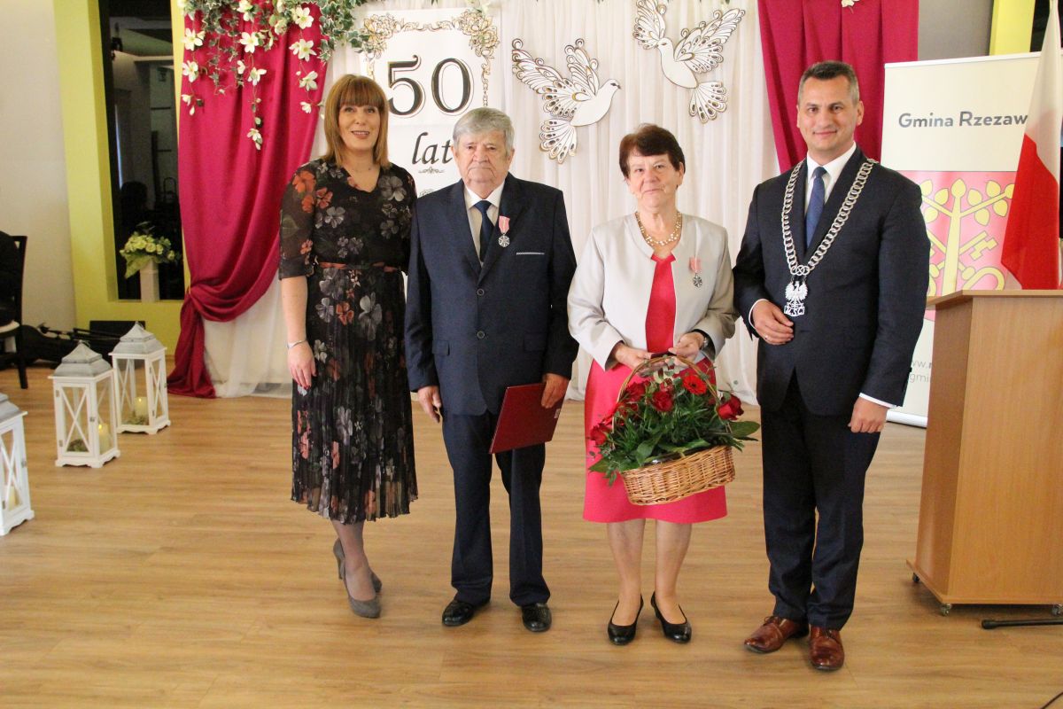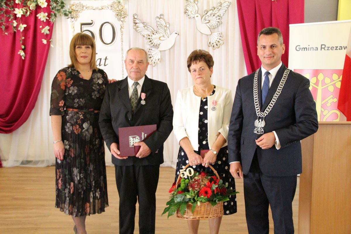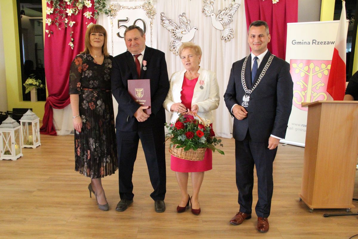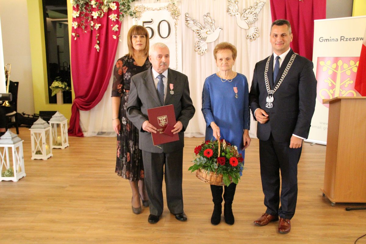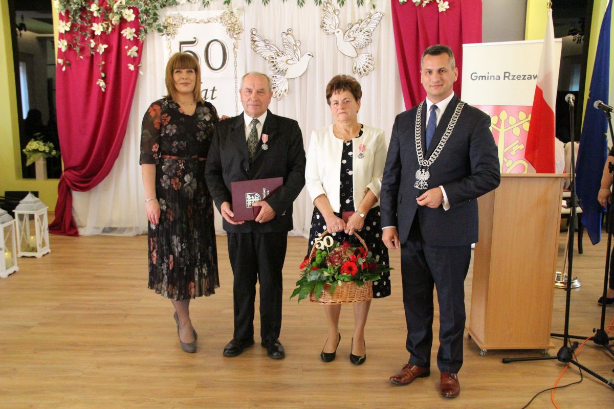 Pamiątkowe medale nadawane przez Prezydenta Rzeczypospolitej Polskiej Jubilatom obchodzącym 50. rocznicę małżeństwa wręczył Wójt Gminy Rzezawa Mariusz Palej. Wszystkie pary otrzymały ponadto okolicznościowe listy gratulacyjne oraz kosze z kwiatami. Były także pamiątkowe zdjęcia, wspólny toast i obiad. Odśpiewano również gromkie „sto lat”. Uroczystość uświetnił występ Orkiestry Dętej Okulice oraz Moniki Gorczycy i Julii Sławęty, które świetnie wykonały kilka piosenek o miłości. Panie z Klubu Senior + przygotowały natomiast przepiękny i chwytający za serce występ artystyczny oraz wręczyły Jubilatom róże i ozdobne ramki z życzeniami. Uroczystość dostarczyła świętującym małżeństwom wiele radości. Pojawiły się także łzy wzruszenia.