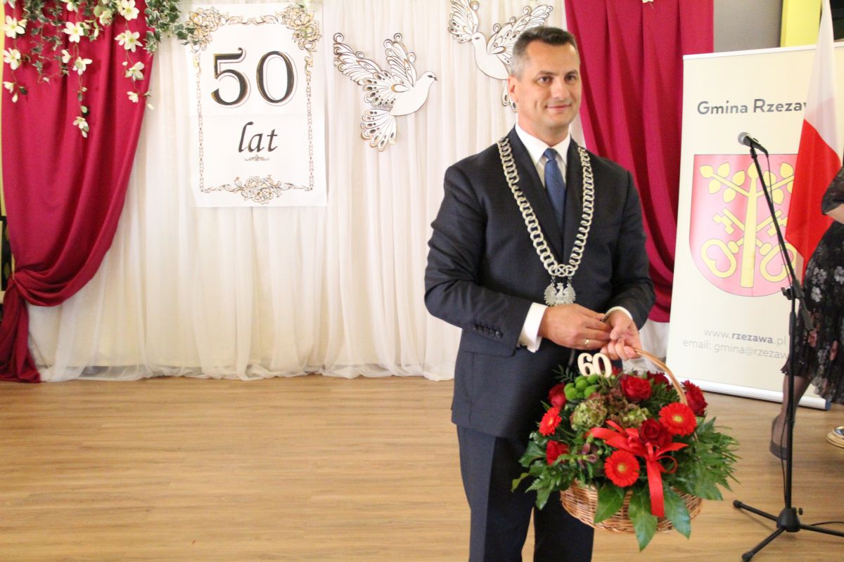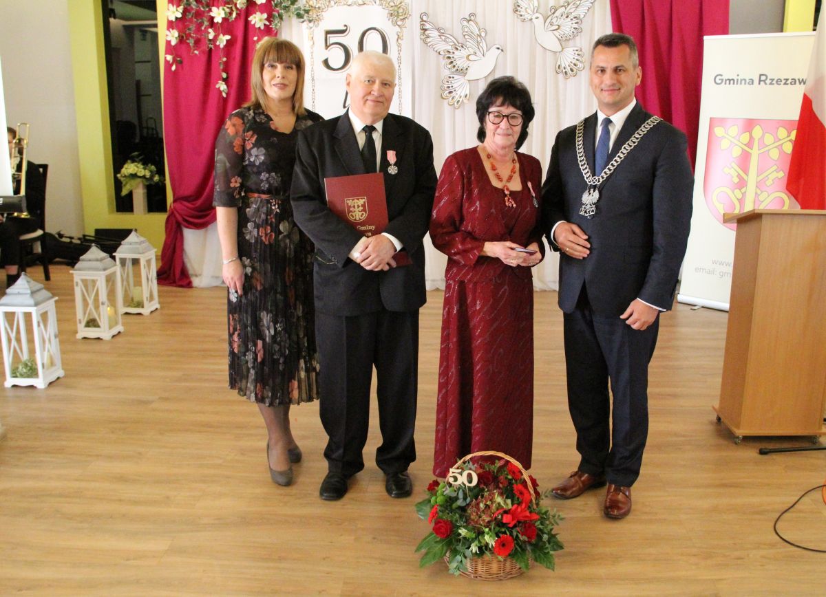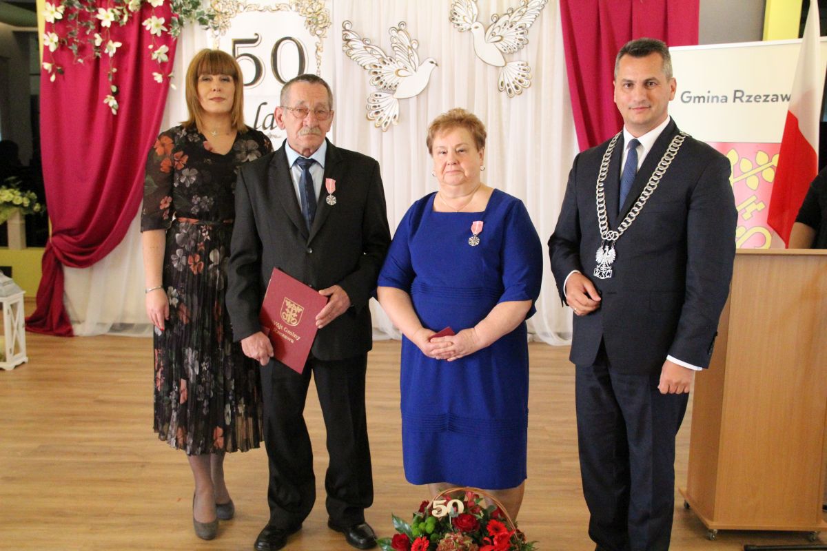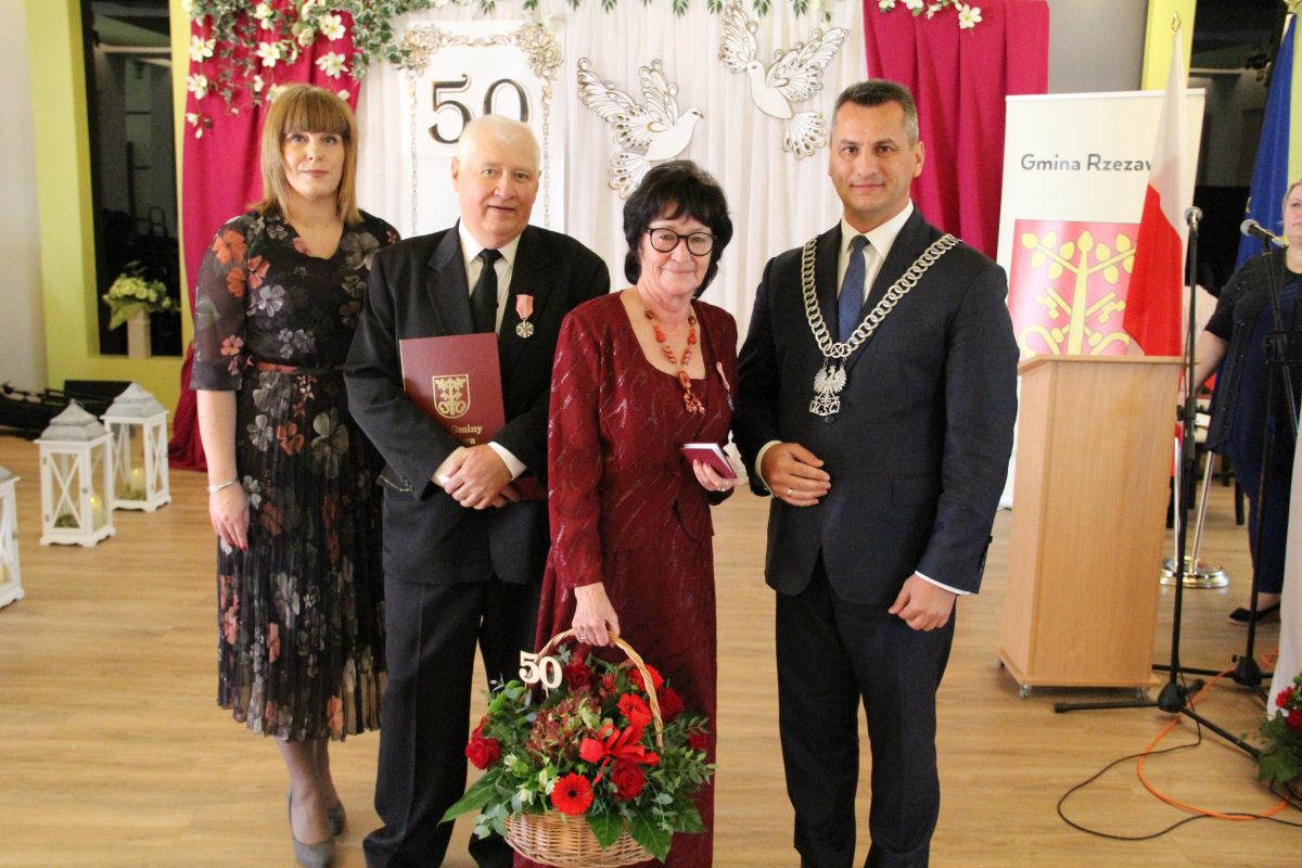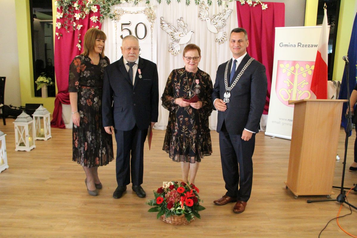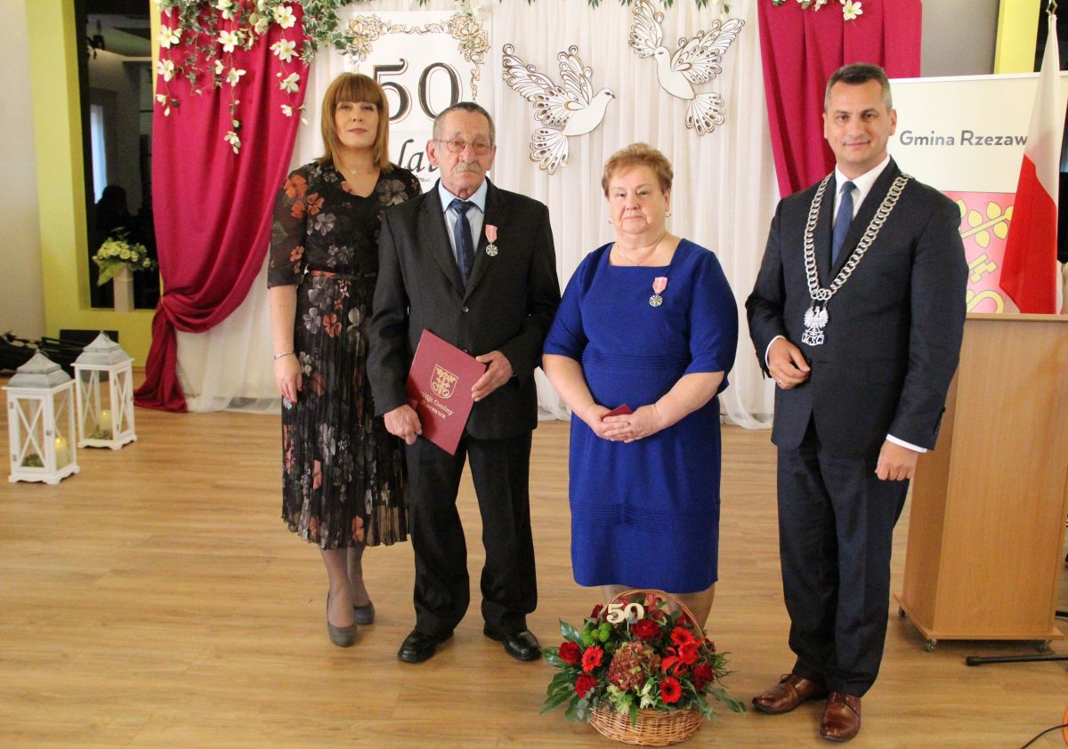 Pamiątkowe medale nadawane przez Prezydenta Rzeczypospolitej Polskiej Jubilatom obchodzącym 50. rocznicę małżeństwa wręczył Wójt Gminy Rzezawa Mariusz Palej. Wszystkie pary otrzymały ponadto okolicznościowe listy gratulacyjne oraz kosze z kwiatami. Były także pamiątkowe zdjęcia, wspólny toast i obiad. Odśpiewano również gromkie „sto lat”. Uroczystość uświetnił występ Orkiestry Dętej Okulice oraz Moniki Gorczycy i Julii Sławęty, które świetnie wykonały kilka piosenek o miłości. Panie z Klubu Senior + przygotowały natomiast przepiękny i chwytający za serce występ artystyczny oraz wręczyły Jubilatom róże i ozdobne ramki z życzeniami. Uroczystość dostarczyła świętującym małżeństwom wiele radości. Pojawiły się także łzy wzruszenia.