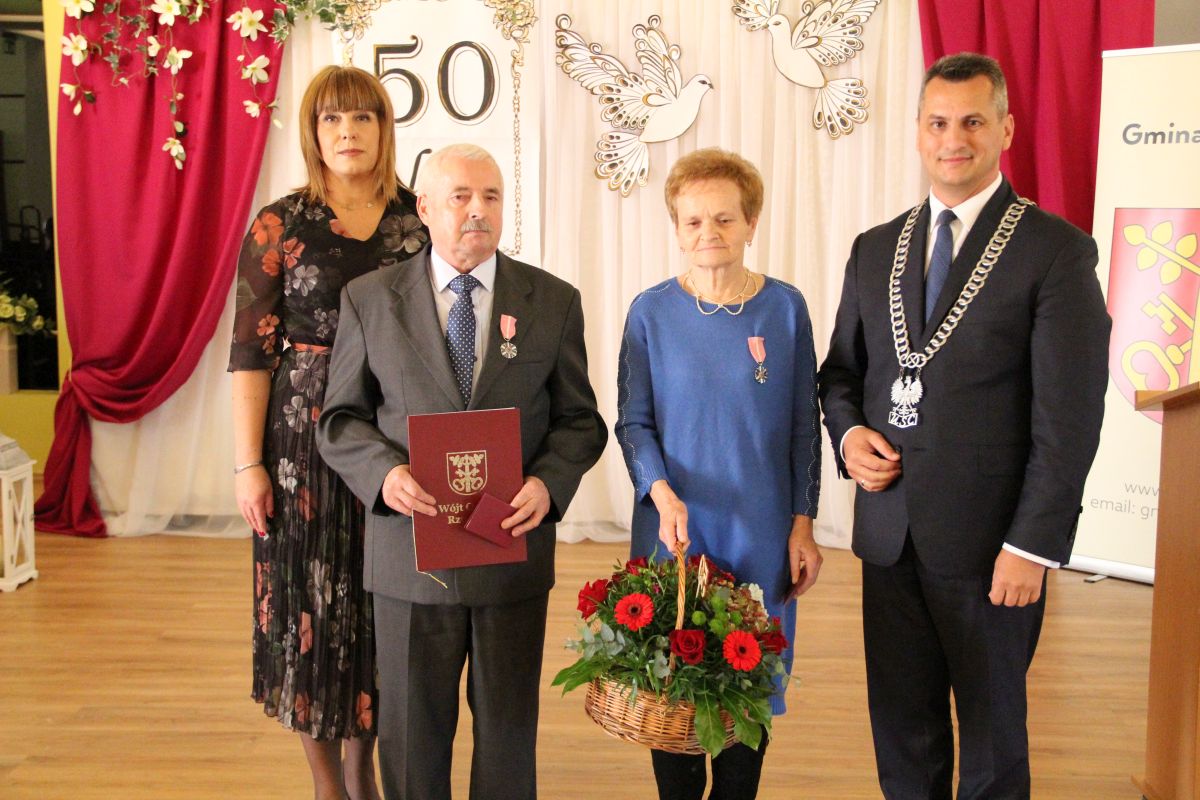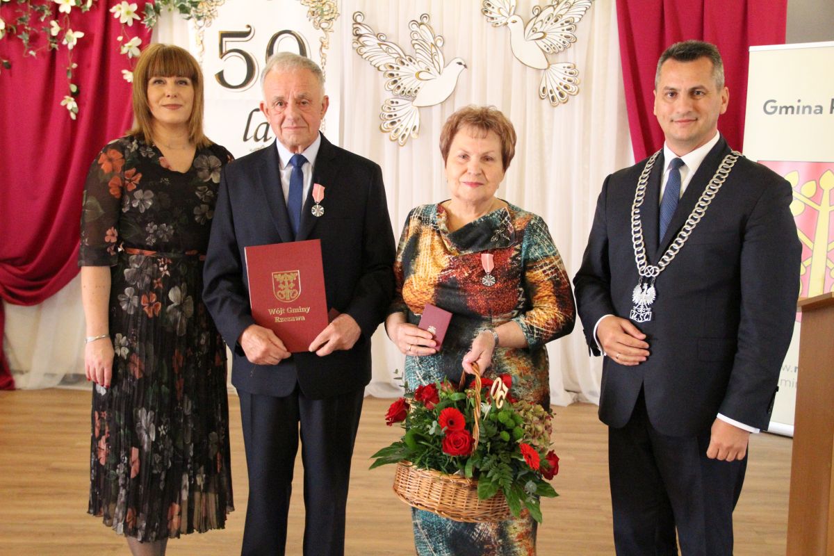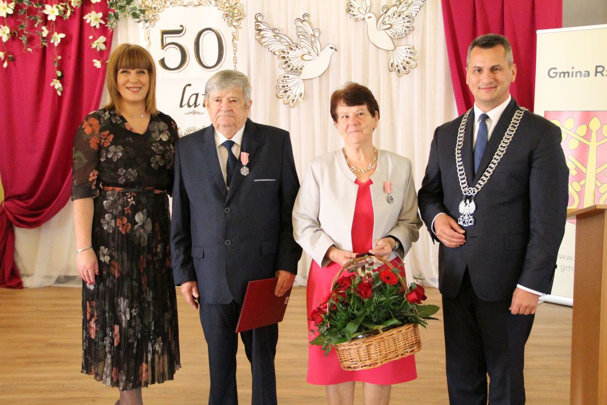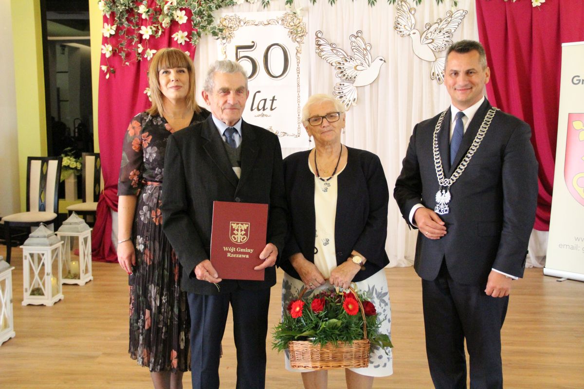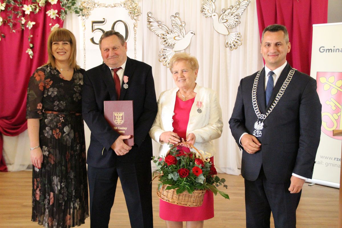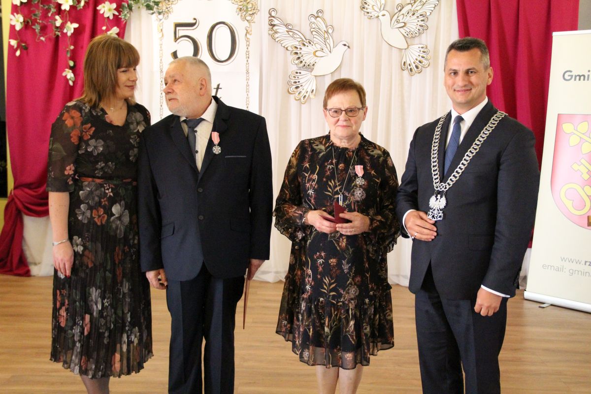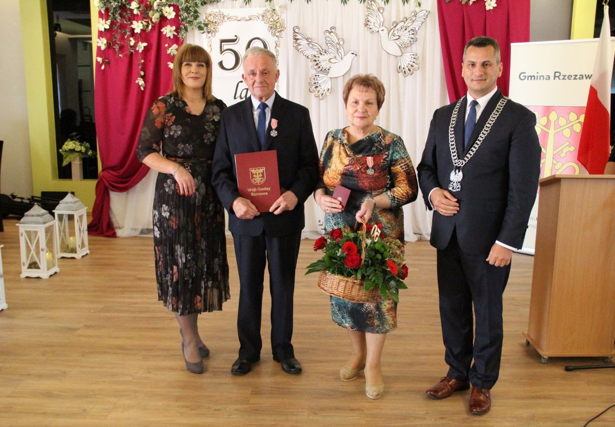 Pamiątkowe medale nadawane przez Prezydenta Rzeczypospolitej Polskiej Jubilatom obchodzącym 50. rocznicę małżeństwa wręczył Wójt Gminy Rzezawa Mariusz Palej. Wszystkie pary otrzymały ponadto okolicznościowe listy gratulacyjne oraz kosze z kwiatami. Były także pamiątkowe zdjęcia, wspólny toast i obiad. Odśpiewano również gromkie „sto lat”. Uroczystość uświetnił występ Orkiestry Dętej Okulice oraz Moniki Gorczycy i Julii Sławęty, które świetnie wykonały kilka piosenek o miłości. Panie z Klubu Senior + przygotowały natomiast przepiękny i chwytający za serce występ artystyczny oraz wręczyły Jubilatom róże i ozdobne ramki z życzeniami. Uroczystość dostarczyła świętującym małżeństwom wiele radości. Pojawiły się także łzy wzruszenia.