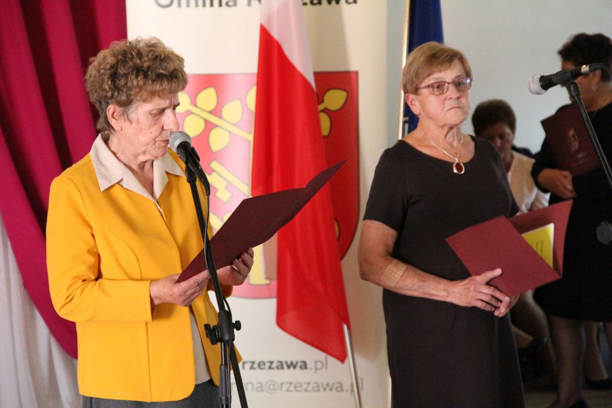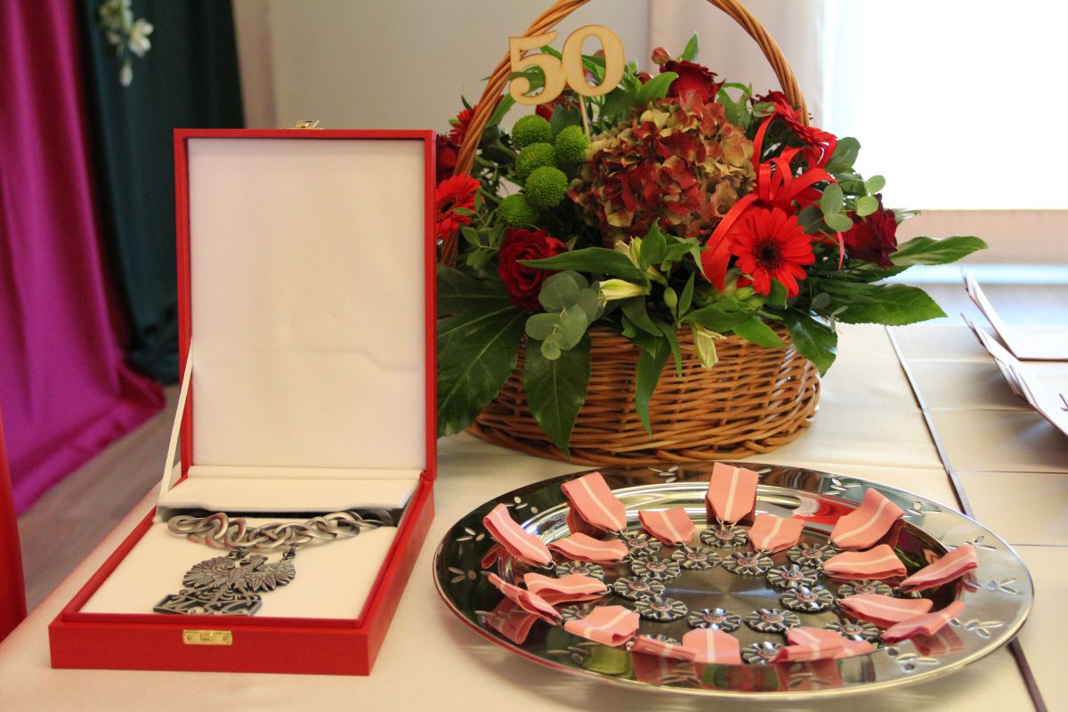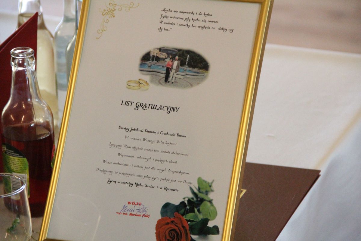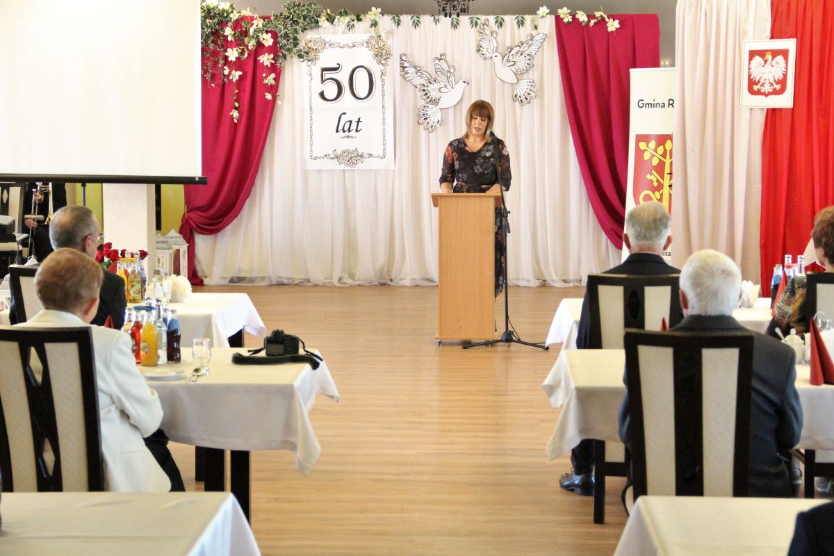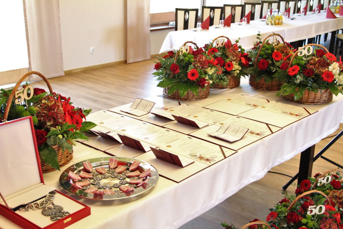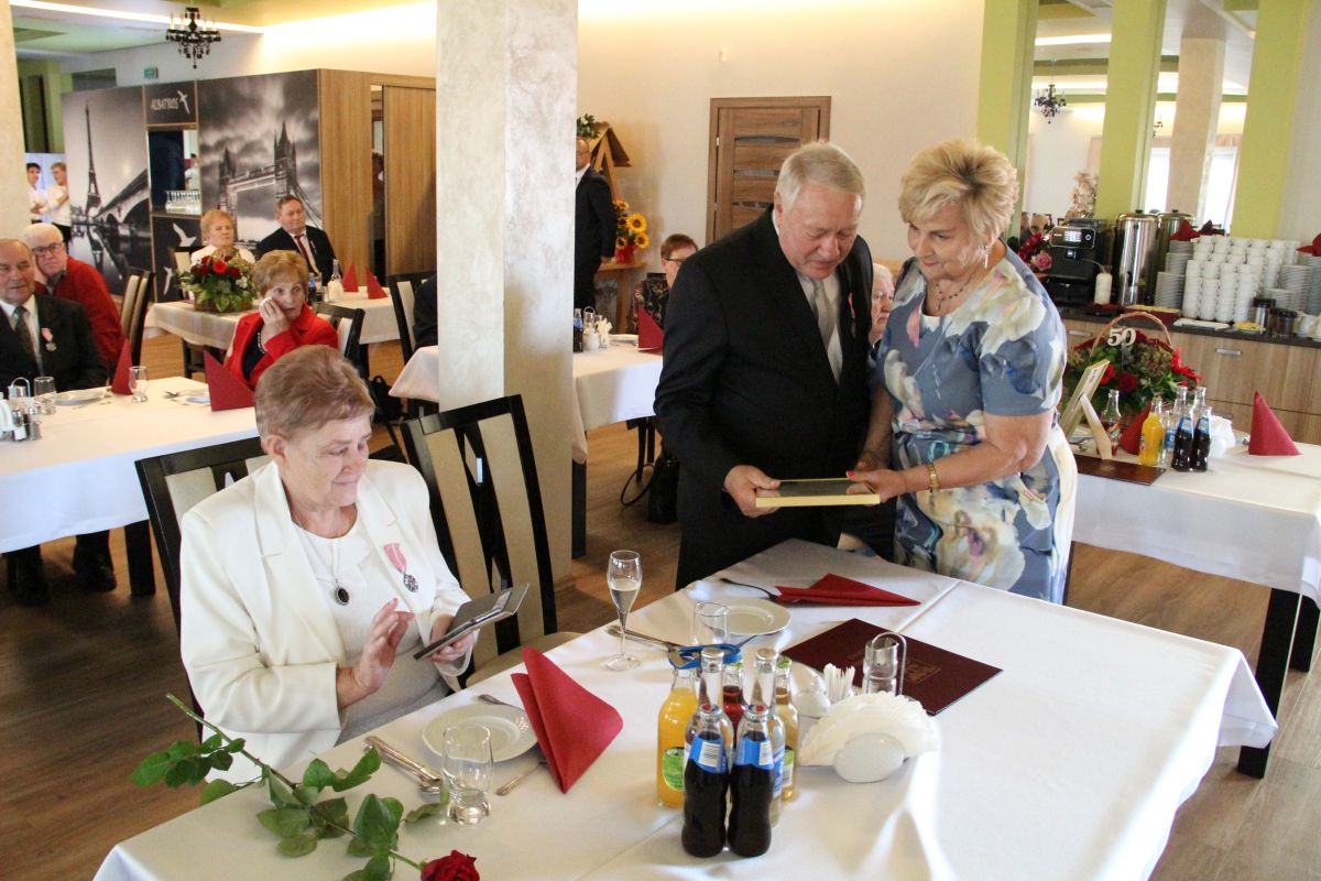 Pamiątkowe medale nadawane przez Prezydenta Rzeczypospolitej Polskiej Jubilatom obchodzącym 50. rocznicę małżeństwa wręczył Wójt Gminy Rzezawa Mariusz Palej. Wszystkie pary otrzymały ponadto okolicznościowe listy gratulacyjne oraz kosze z kwiatami. Były także pamiątkowe zdjęcia, wspólny toast i obiad. Odśpiewano również gromkie „sto lat”. Uroczystość uświetnił występ Orkiestry Dętej Okulice oraz Moniki Gorczycy i Julii Sławęty, które świetnie wykonały kilka piosenek o miłości. Panie z Klubu Senior + przygotowały natomiast przepiękny i chwytający za serce występ artystyczny oraz wręczyły Jubilatom róże i ozdobne ramki z życzeniami. Uroczystość dostarczyła świętującym małżeństwom wiele radości. Pojawiły się także łzy wzruszenia.