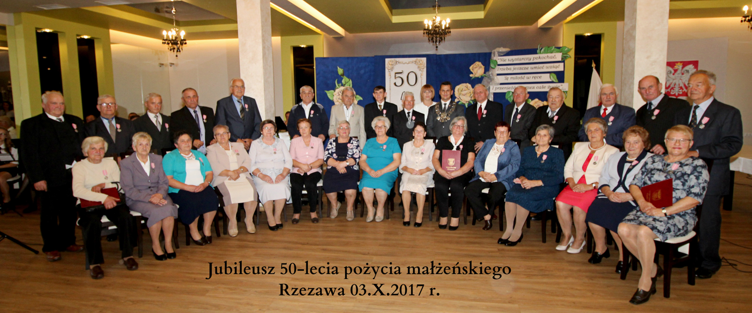 3 października 2017 r. w Gminie Rzezawa – sala bankietowa „Albatros” w Rzezawie - 17 par małżeńskich świętowało swoje Złote Gody, czyli okrągły jubileusz 50-lecia pożycia małżeńskiego. Wyróżnionymi Jubilatami, którzy zostali odznaczeni medalami przyznawanymi przez prezydenta Rzeczypospolitej Polskiej „Za długoletnie pożycie małżeńskie” byli Państwo: