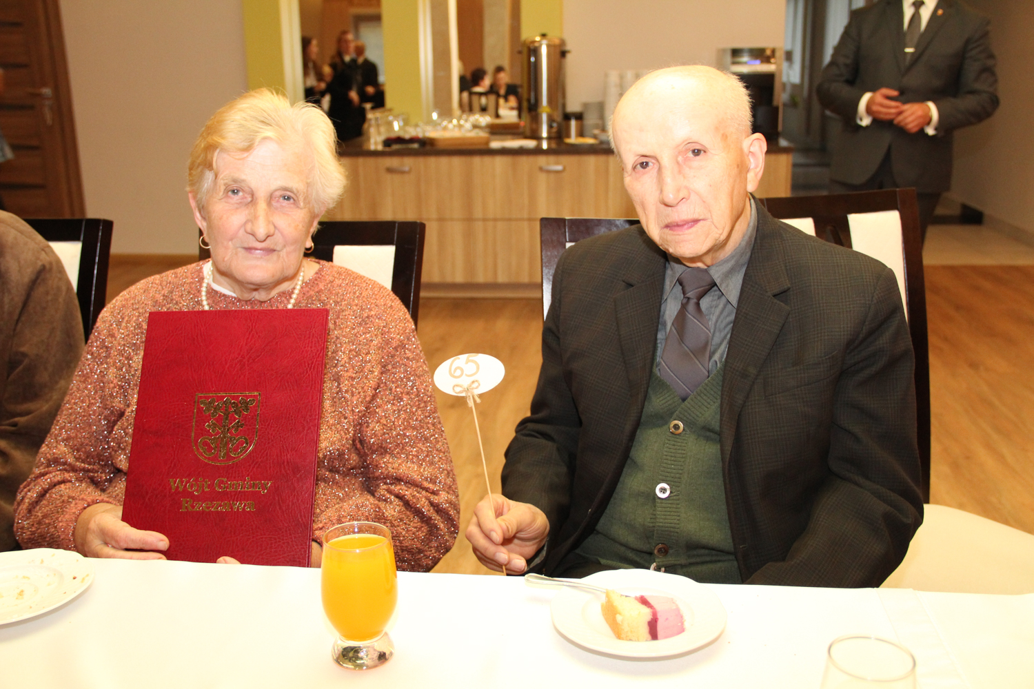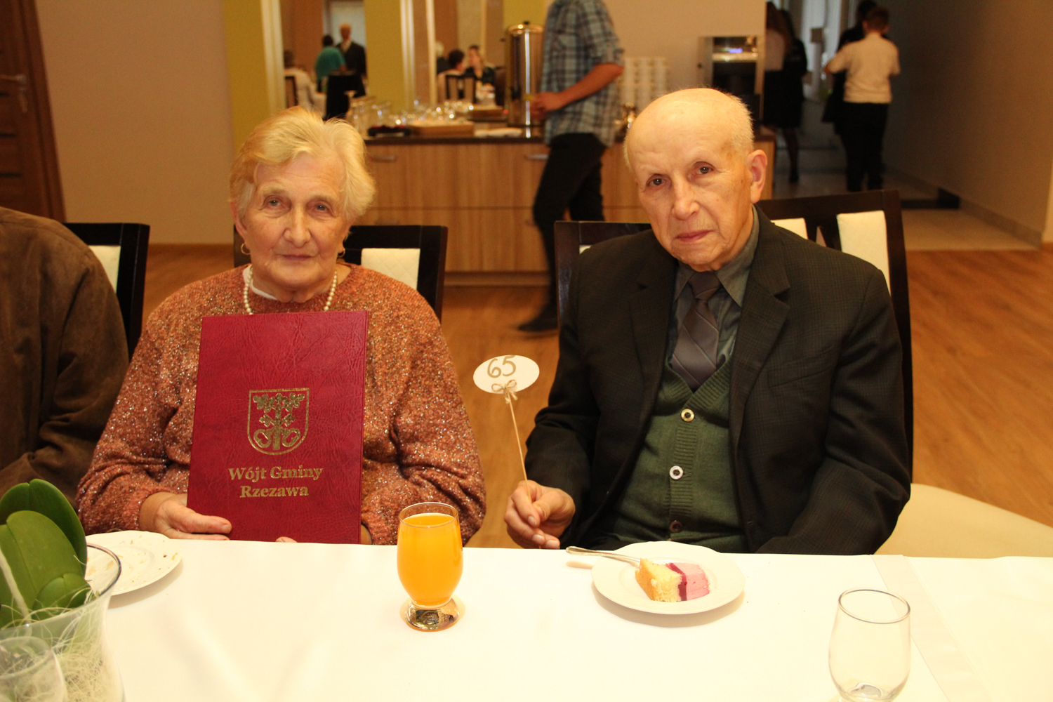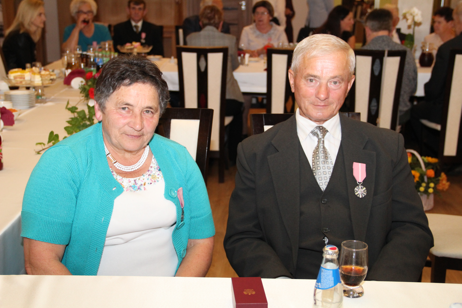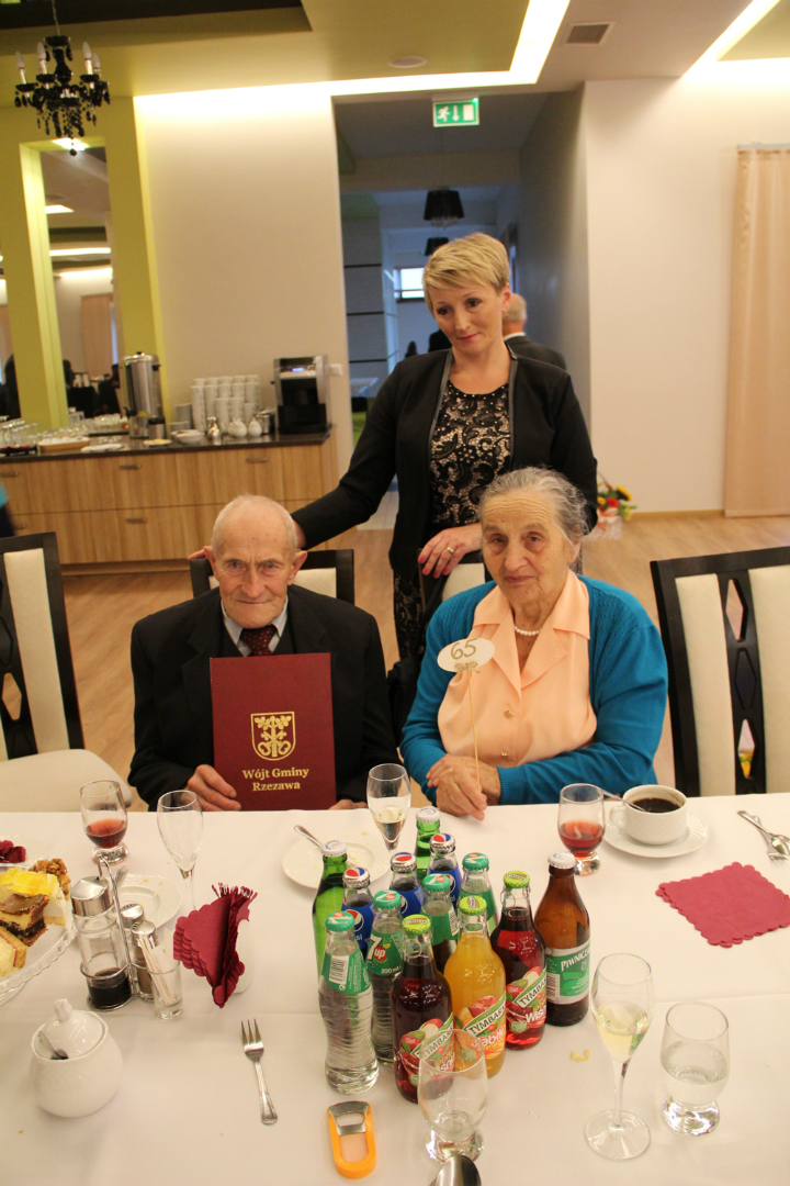z Jodłówki, Maria i Stanisław Pająkowie z Jodłówki, Janina i Stefan Ziębowie z Rzezawy oraz Państwo Helena i Władysław Multanowie z Krzeczowa (nieobecni podczas uroczystości). Jubileusz 65 lat wspólnego pożycia małżeńskiego – Żelazne Gody - obchodzili Państwo Maria i Marian Baniakowie z Dąbrówki, Państwo Anna i Władysław Słoninowie