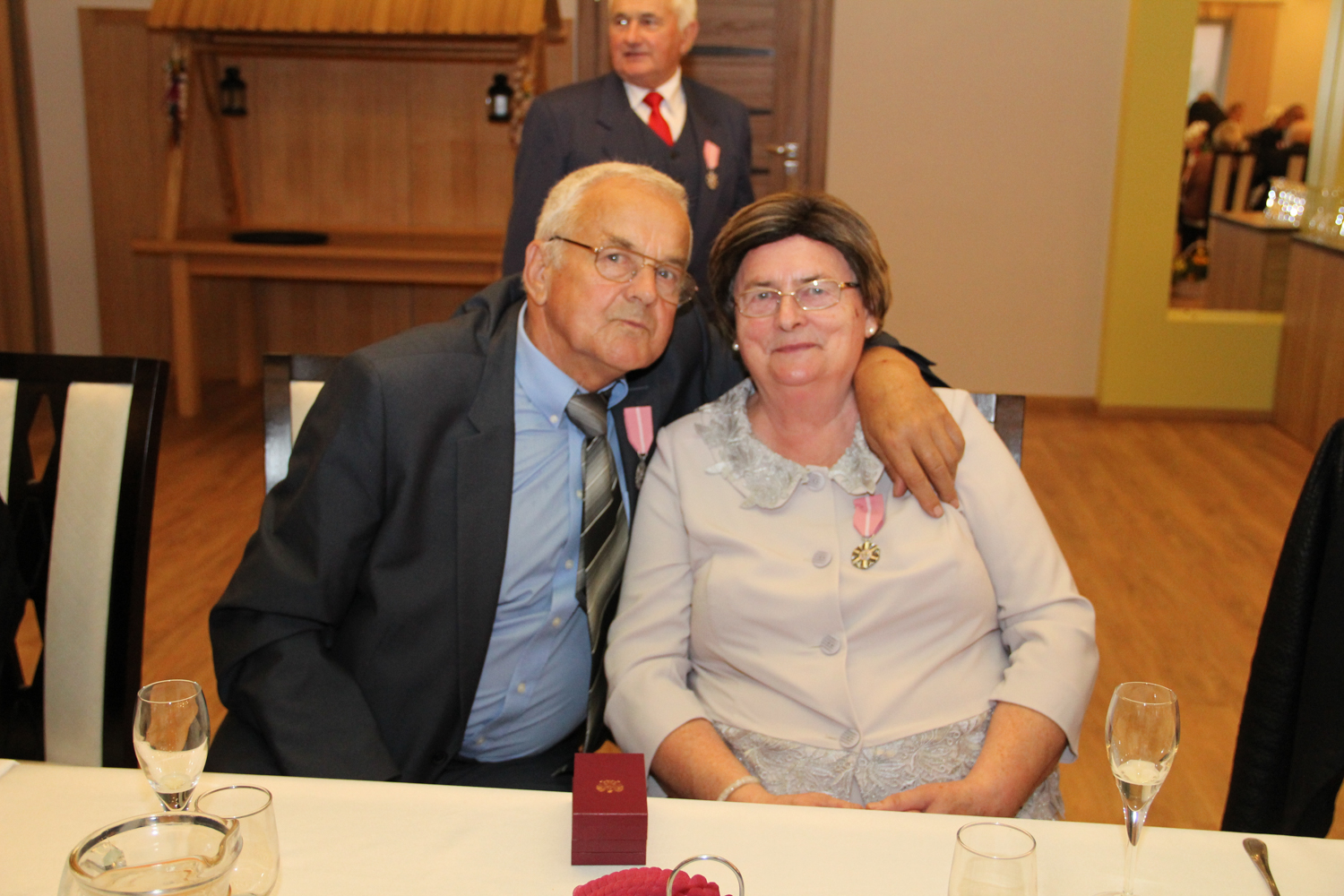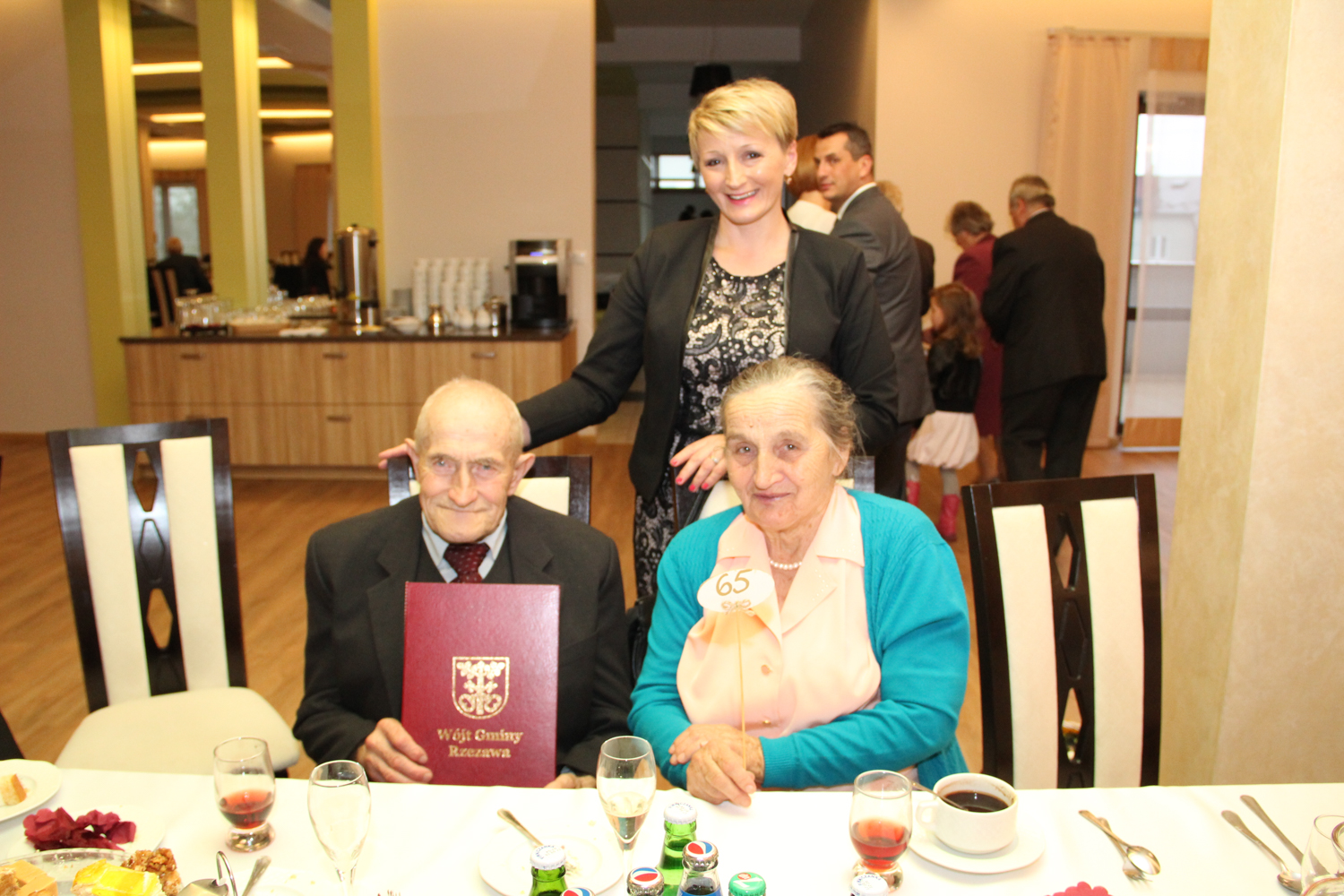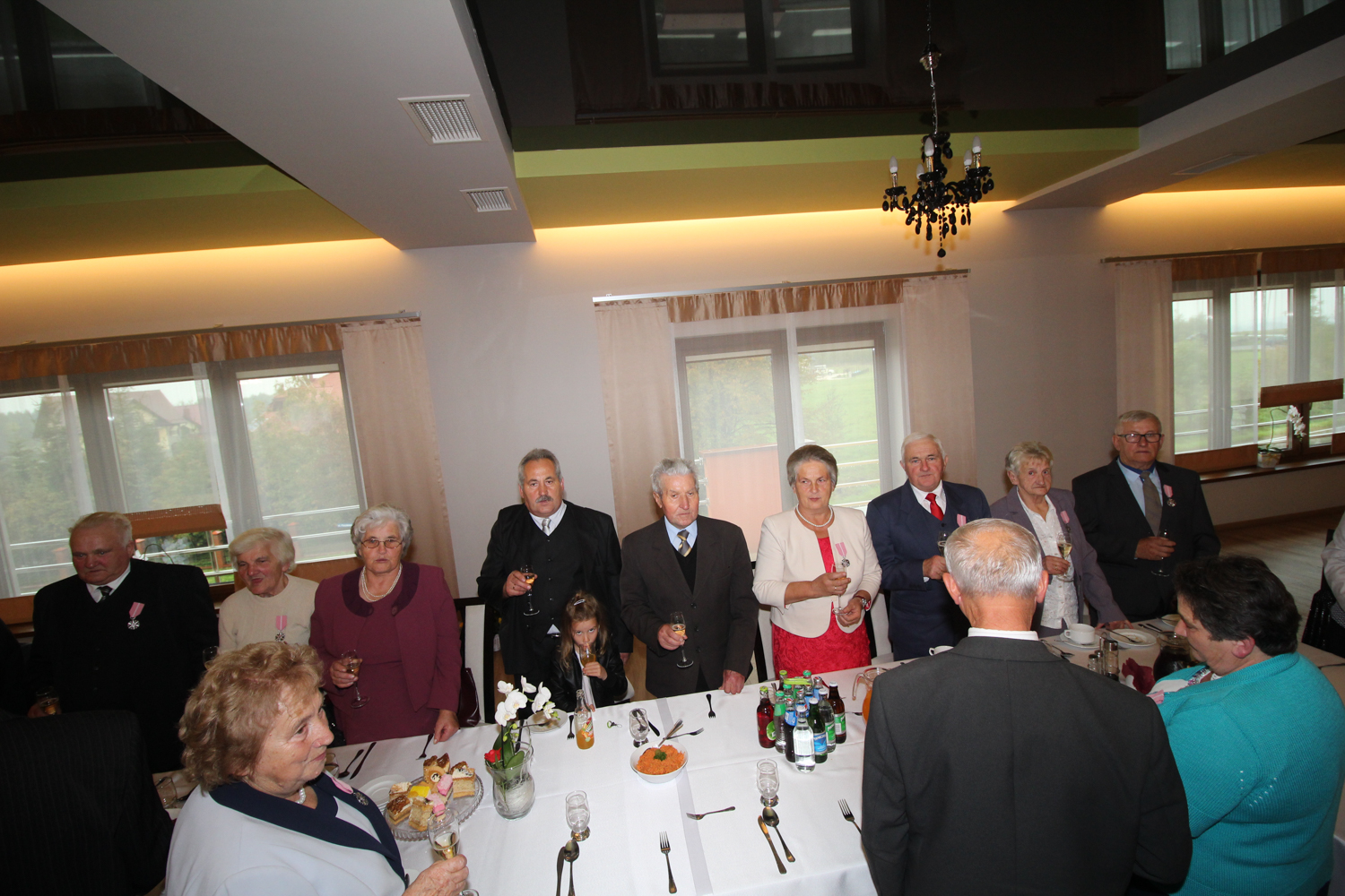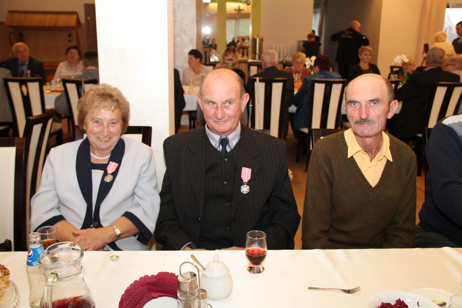 z Jodłówki, Maria i Stanisław Pająkowie z Jodłówki, Janina i Stefan Ziębowie z Rzezawy oraz Państwo Helena i Władysław Multanowie z Krzeczowa (nieobecni podczas uroczystości). Jubileusz 65 lat wspólnego pożycia małżeńskiego – Żelazne Gody - obchodzili Państwo Maria i Marian Baniakowie z Dąbrówki, Państwo Anna i Władysław Słoninowie