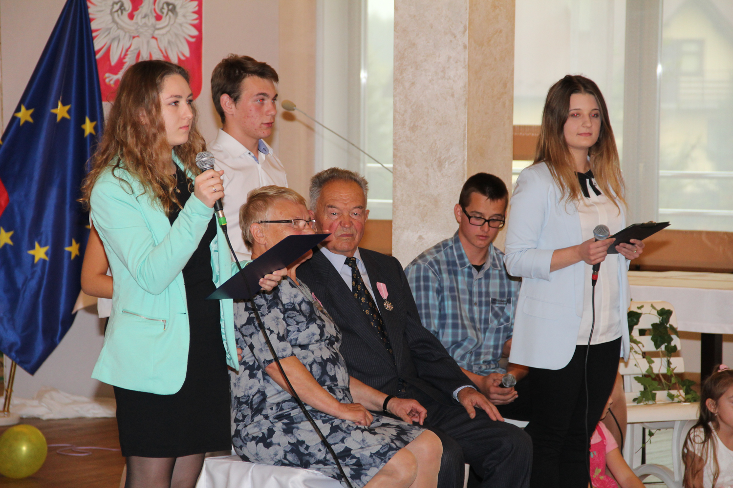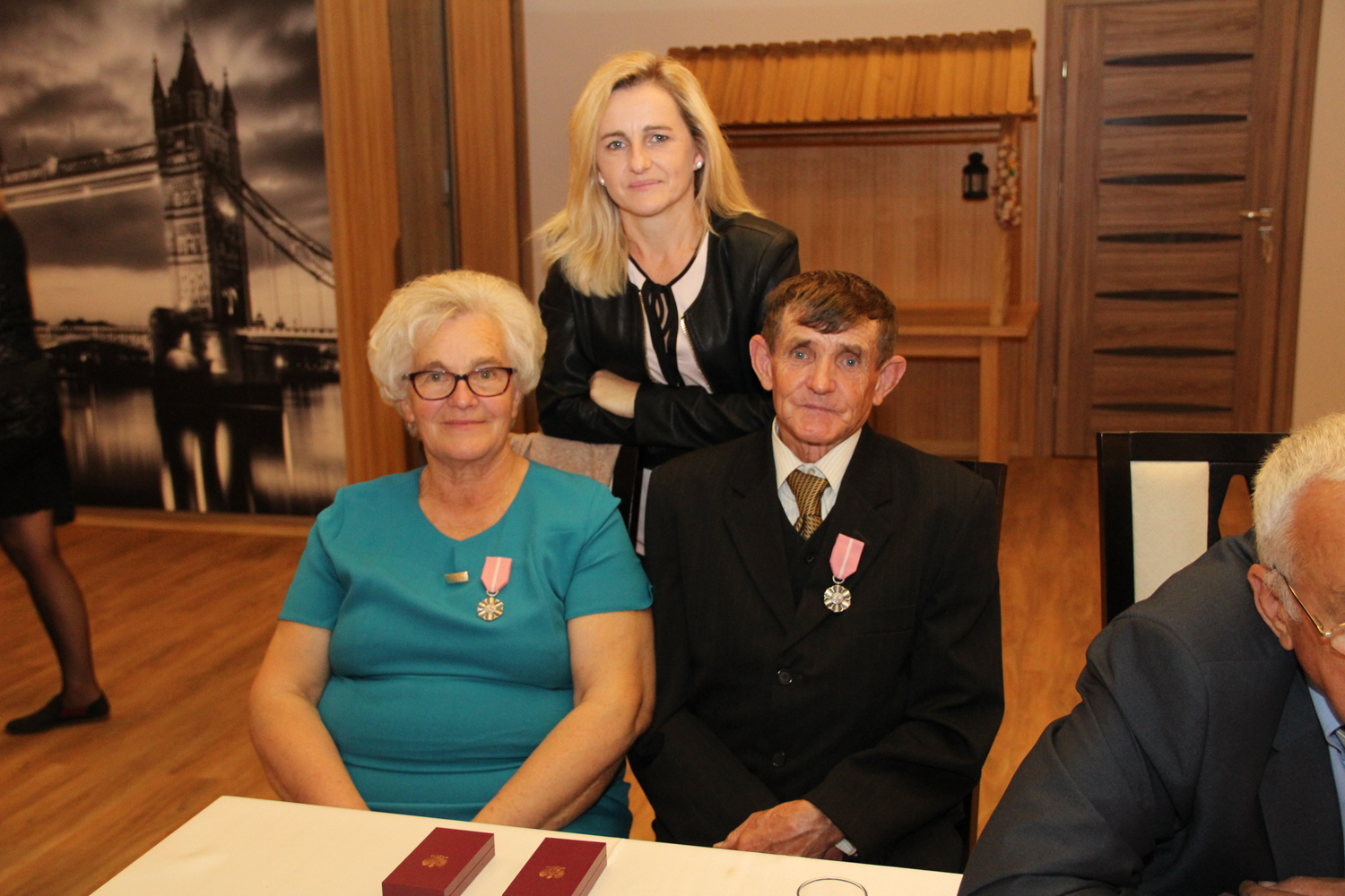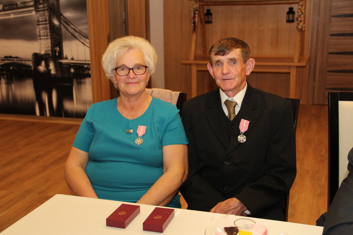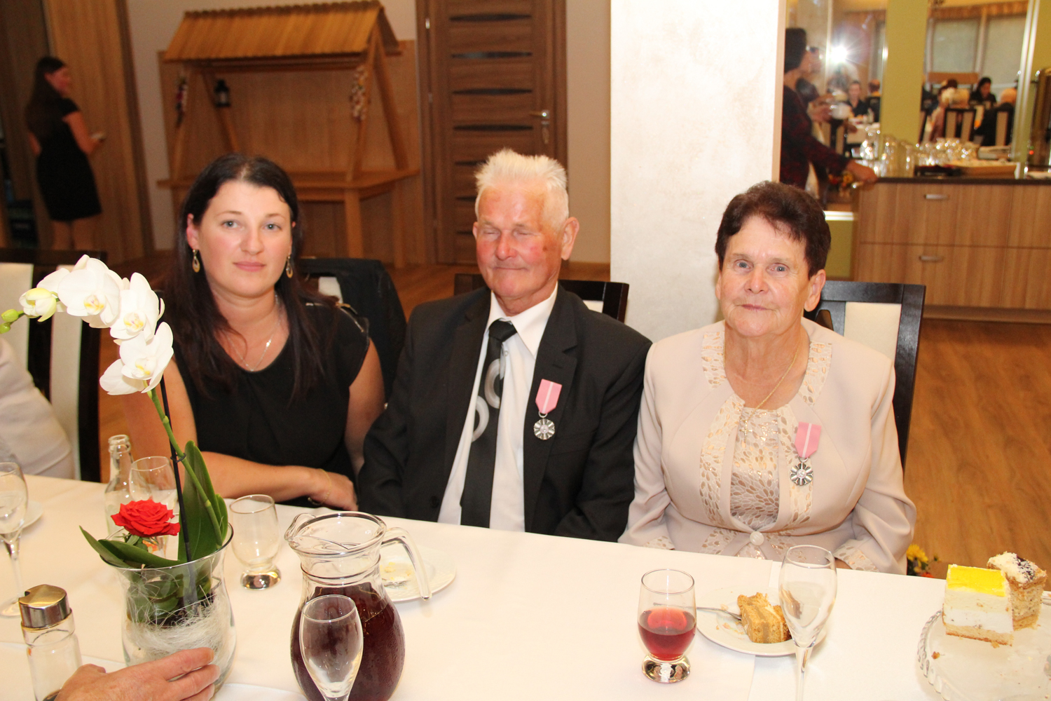 z Jodłówki, Maria i Stanisław Pająkowie z Jodłówki, Janina i Stefan Ziębowie z Rzezawy oraz Państwo Helena i Władysław Multanowie z Krzeczowa (nieobecni podczas uroczystości). Jubileusz 65 lat wspólnego pożycia małżeńskiego – Żelazne Gody - obchodzili Państwo Maria i Marian Baniakowie z Dąbrówki, Państwo Anna i Władysław Słoninowie