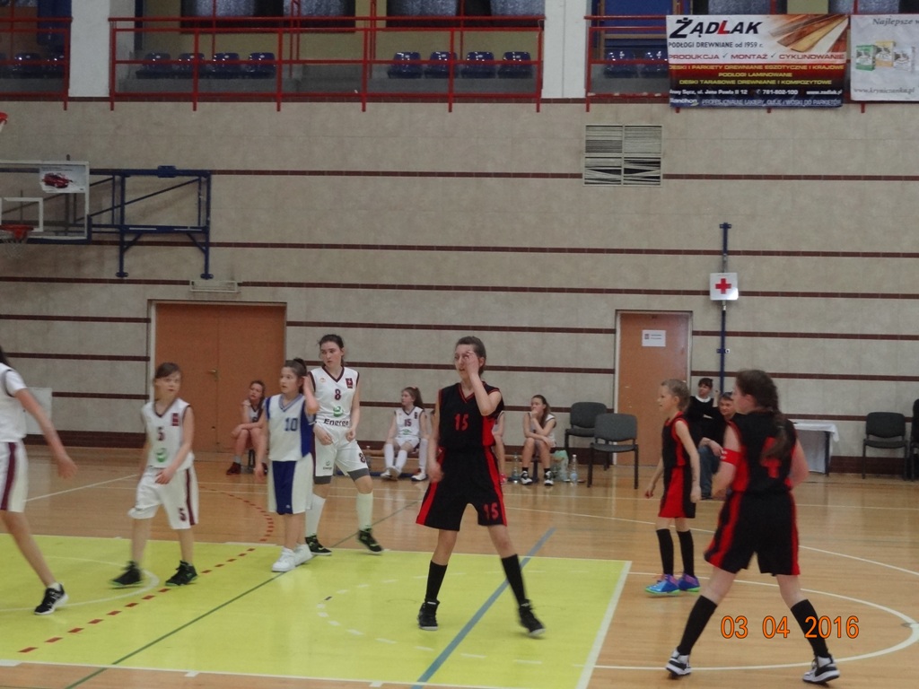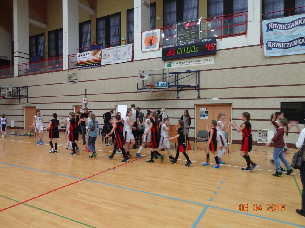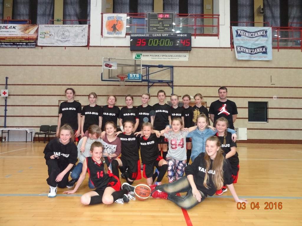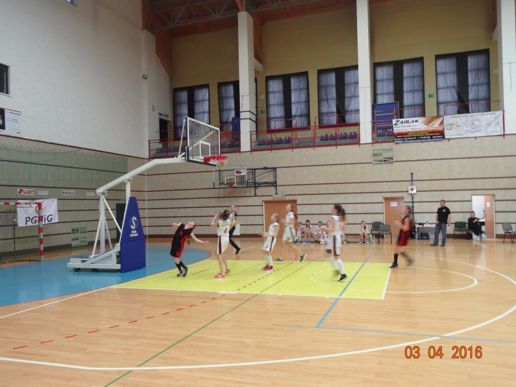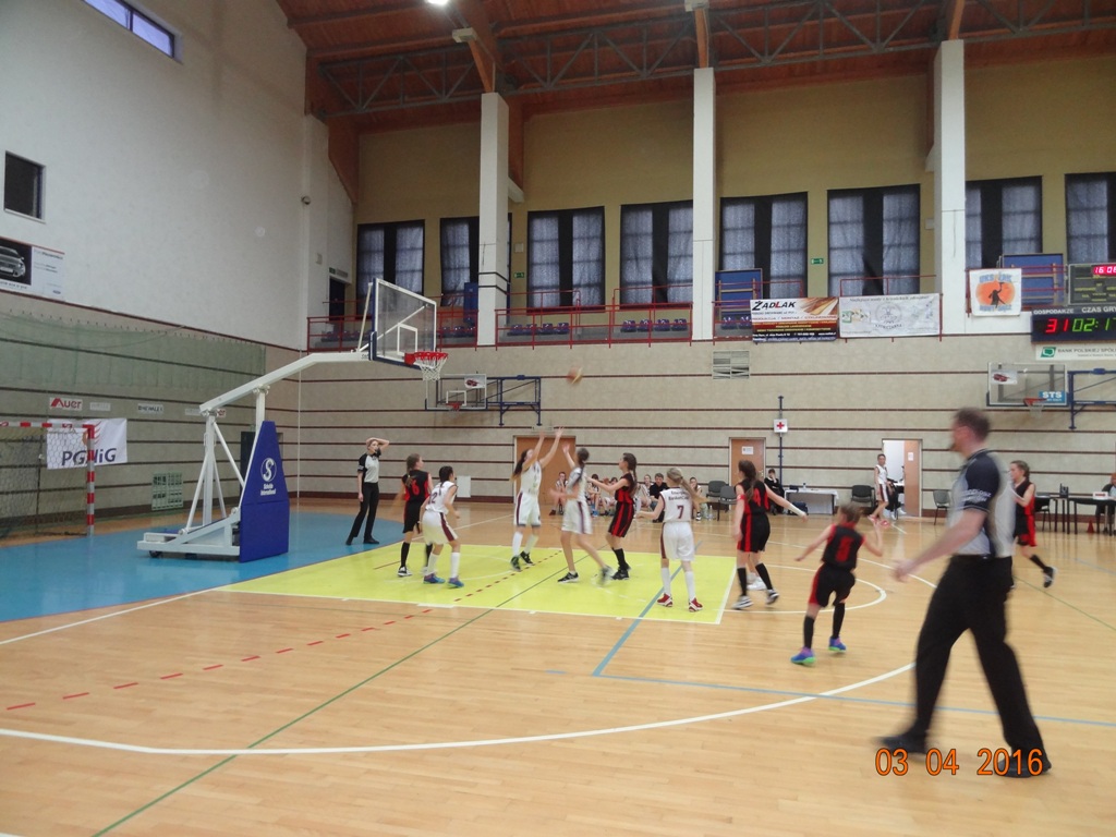W I kwarcie wyszły na prowadzenie z wynikiem 10:6. Wydawało się, że w pozostałych kwartach bez trudu utrzymają przewagę, a nawet zdecydowanie ją zwiększą. Niestety II kwarta okazała się wielkim zaskoczeniem, gdyż zawodniczki z Nowego Sącza nie tylko wyrównały, ale zdobyły przewagę 6 punktów. Po krótkiej przerwie nasze zawodniczki wróciły na boisko bardzo zmotywowane i nareszcie pokazały klasę. Po III kwarcie szala zwycięstwa przechyliła się na naszą korzyść z wynikiem 30:21. Koszykarki z drużyny przeciwnej straciły pewność siebie i do końca meczu nie zdołały odrobić strat. Mimo, iż w IV kwarcie poziom gry był bardzo wyrównany (15:14 dla naszych) to ostateczny wynik, jaki pokazał się na tablicy mówi sam za siebie: