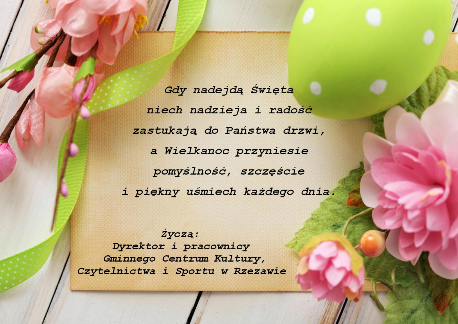 Życzenia świąteczne od Gminnego Centrum Kultury, Czytelnictwa i Sportu w Rzezawie