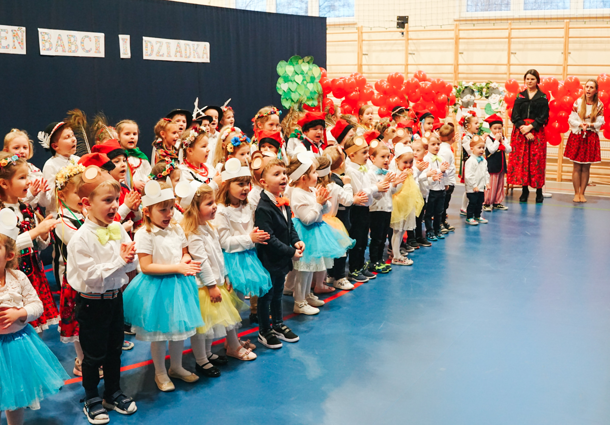 Dnia 21.01.2023 r. hala sportowa przy Szkole Podstawowej w Jodłówce wypełniła się gośćmi Przedszkolaków, którzy zaprosili Babcie i Dziadków na uroczystość z okazji ich święta.