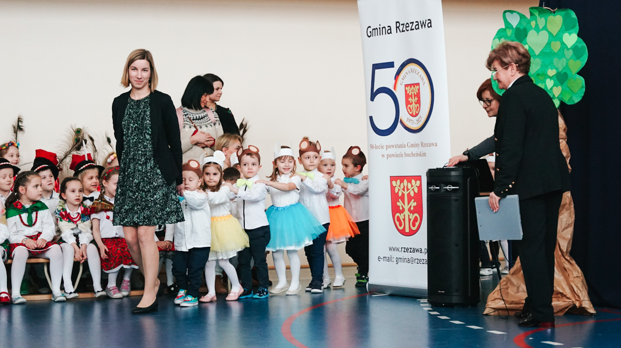 Dlaczego 50 życzeń ?, bo w tym roku 50-lecie utworzenia w powiecie bocheńskim obchodzi Nasza Gmina Rzezawa. Pani Dyrektor - Marta Baliszewska przedstawiła krótką historię Gminy Rzezawa, a swoją obecnością na uroczystości zaszczycił Wójt Pan Mariusz Palej. Gościem w podwójnej roli była Pani Barbara Kwiecińska –Przewodnicząca Rady Gminy Rzezawa i babcia Aleksandry i Daniela.