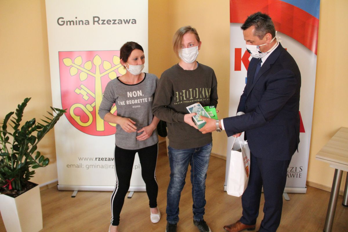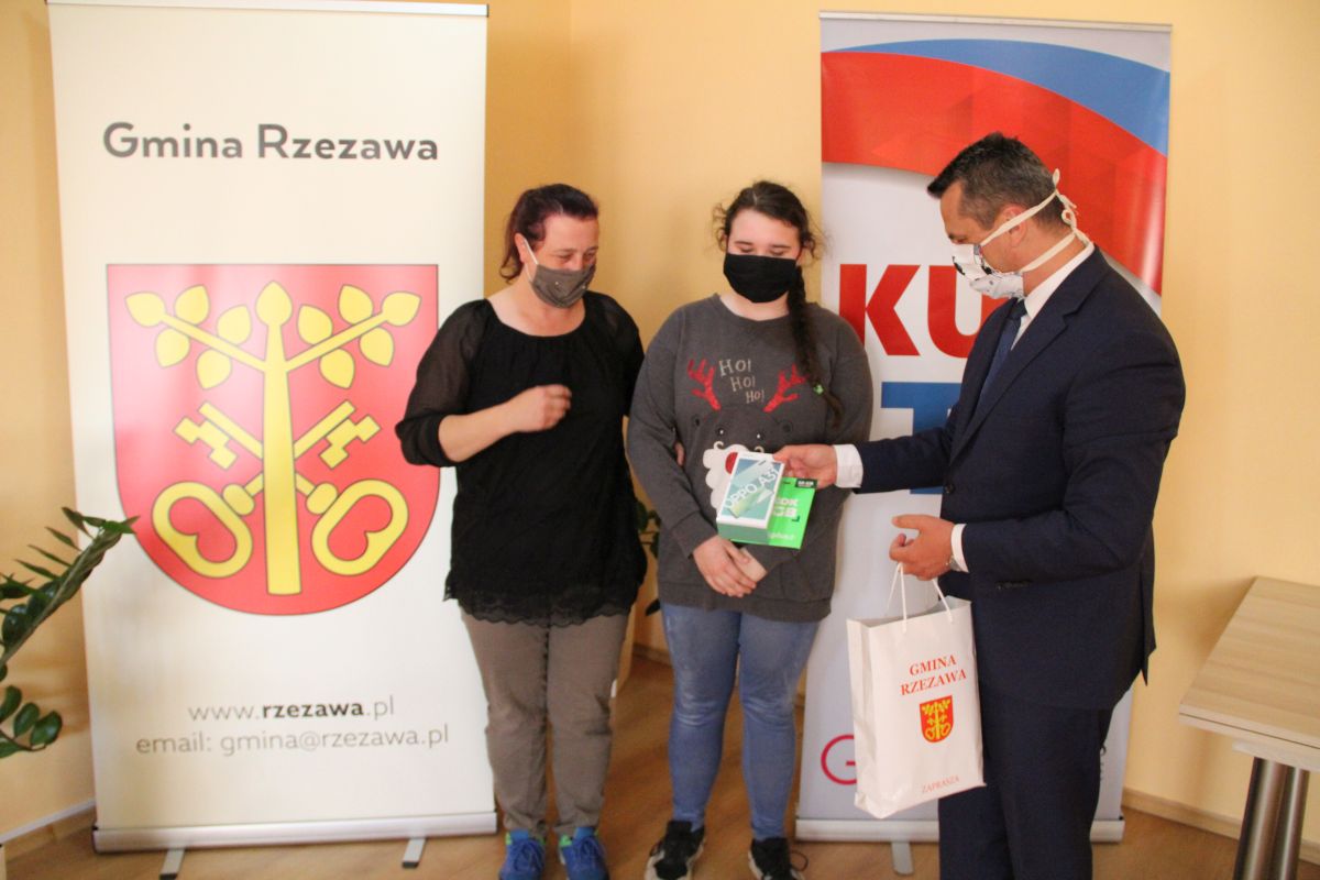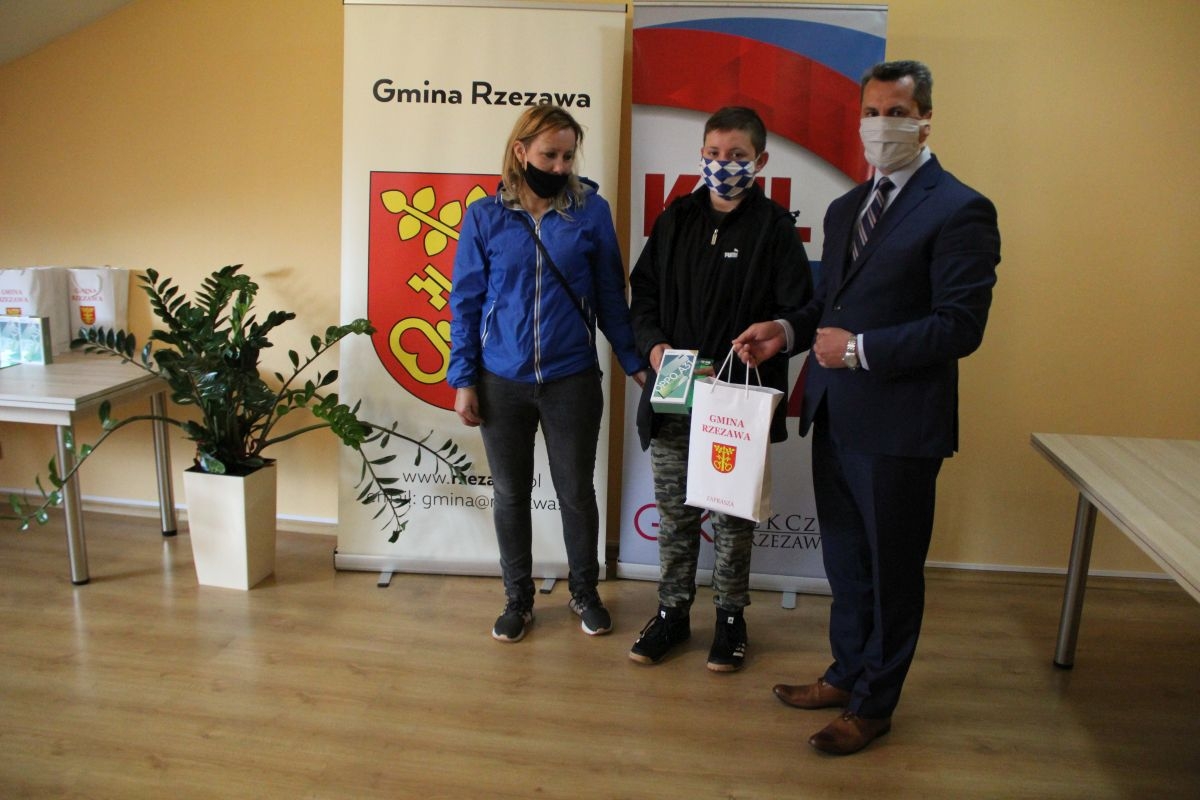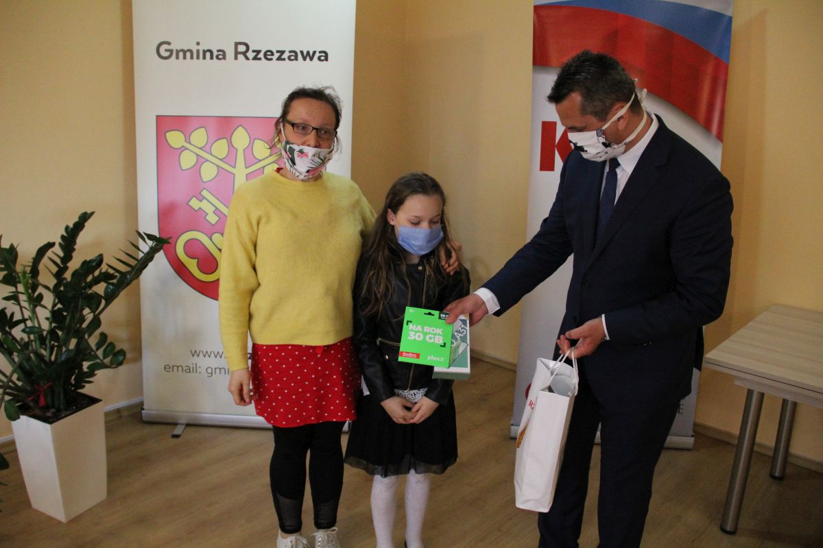 Smartfony zostały wręczone uczniom lub w przypadku ich nieobecności rodzicom dzieci przez Wójta Gminy Rzezawa Mariusza Paleja, który podarował każdemu także kilka drobnych upominków. Wśród nich były ceramiczne kubki, opaski odblaskowe, długopisy, smycze i bidony. Prezenty otrzymało w sumie czternaście osób: Kacper Giemza i Dominik Puzia z PSP w Borku, Dariusz Strózik i Gabriela Wygoda z PSP w Okulicach, Dominika Wolnik i Eliza Szydłowska z PSP w Rzezawie, Igor Surowy i Klaudia Strzyż z PSP w Krzeczowie, Oliwia Ścisło i Bartłomiej Piotrowski z PSP w Łazach, Nikodem Hajnosz i Szymon Wiercioch z PSP w Dąbrówce oraz Oskar Błaszkiewicz i Kacper Cisoń z PSP w Jodłówce.