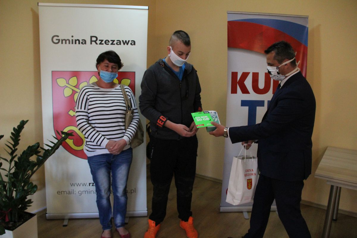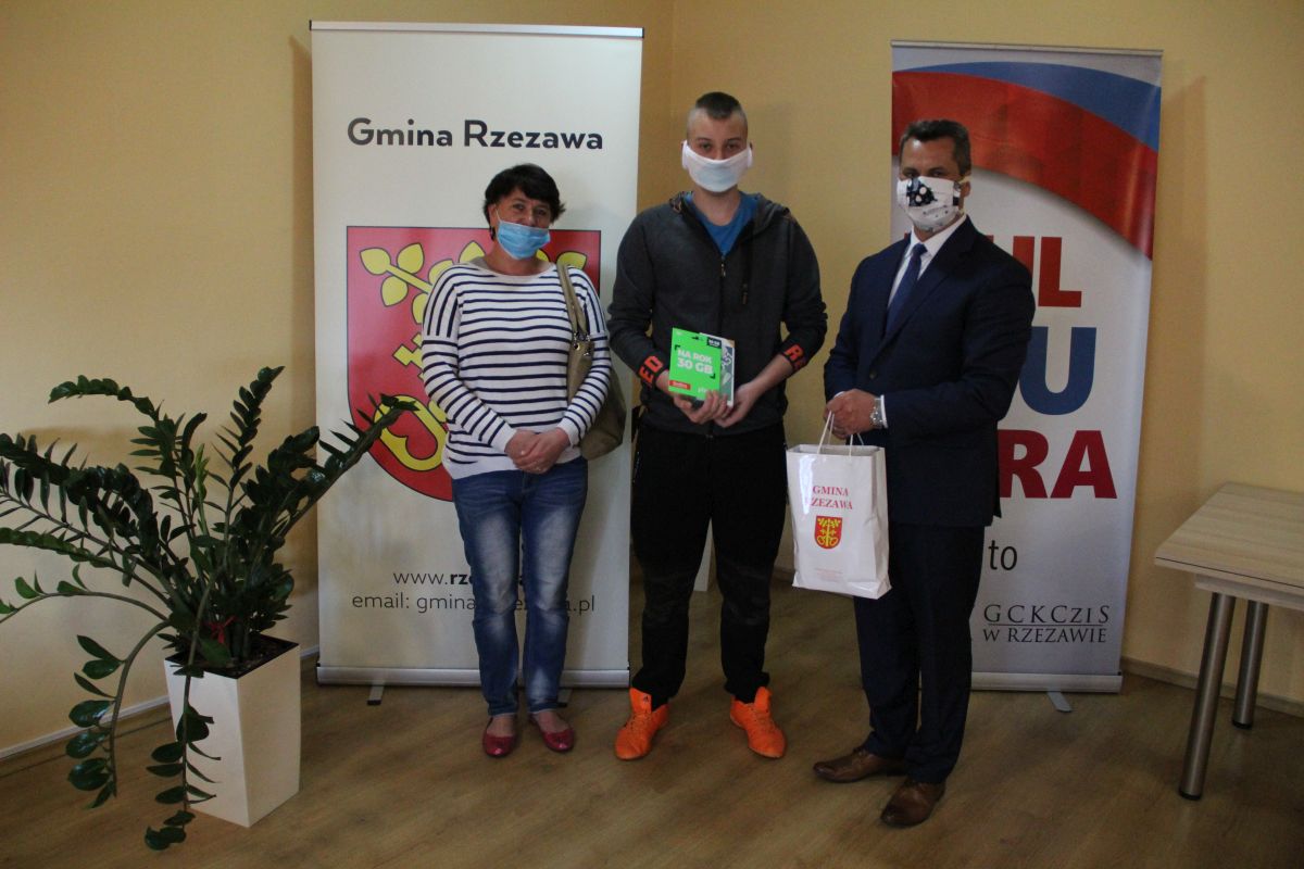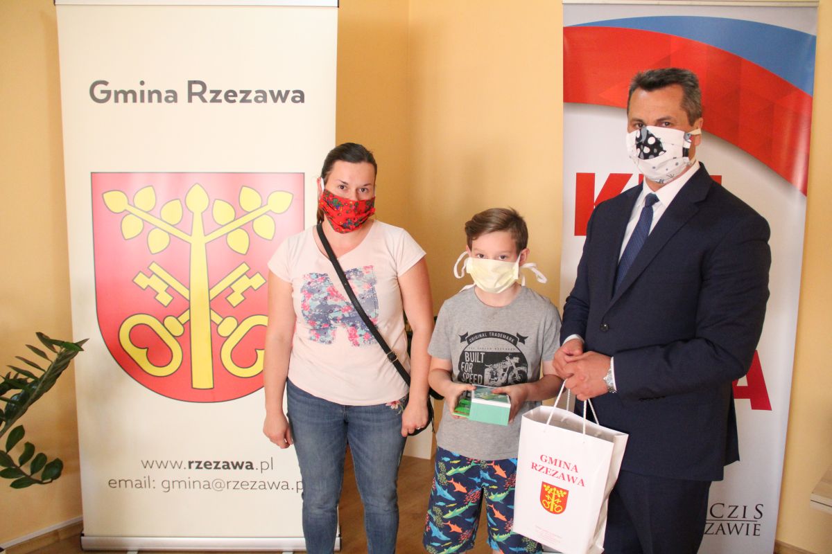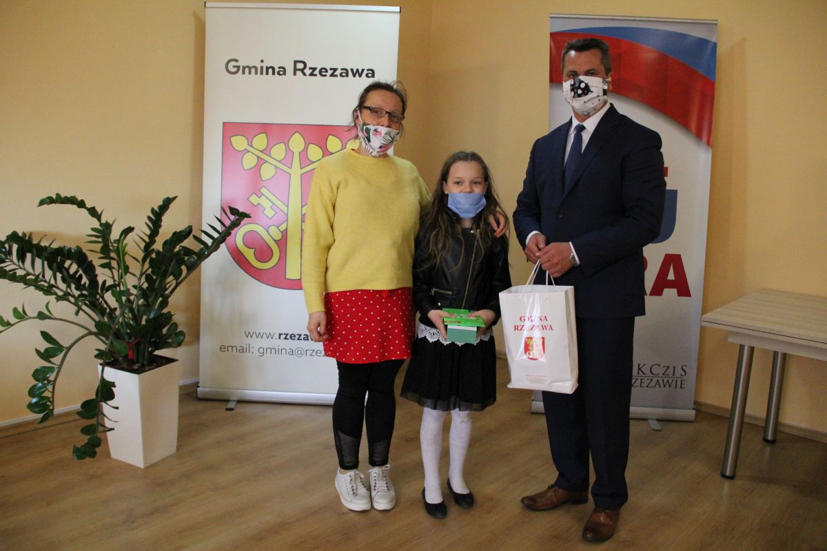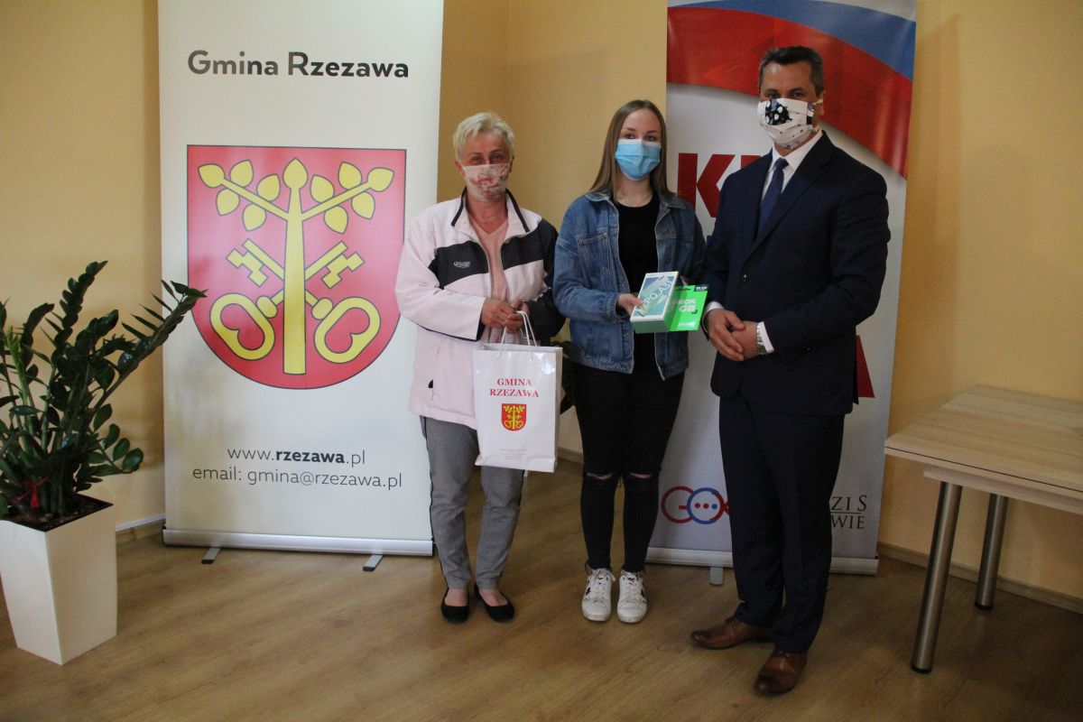 Smartfony zostały wręczone uczniom lub w przypadku ich nieobecności rodzicom dzieci przez Wójta Gminy Rzezawa Mariusza Paleja, który podarował każdemu także kilka drobnych upominków. Wśród nich były ceramiczne kubki, opaski odblaskowe, długopisy, smycze i bidony. Prezenty otrzymało w sumie czternaście osób: Kacper Giemza i Dominik Puzia z PSP w Borku, Dariusz Strózik i Gabriela Wygoda z PSP w Okulicach, Dominika Wolnik i Eliza Szydłowska z PSP w Rzezawie, Igor Surowy i Klaudia Strzyż z PSP w Krzeczowie, Oliwia Ścisło i Bartłomiej Piotrowski z PSP w Łazach, Nikodem Hajnosz i Szymon Wiercioch z PSP w Dąbrówce oraz Oskar Błaszkiewicz i Kacper Cisoń z PSP w Jodłówce.