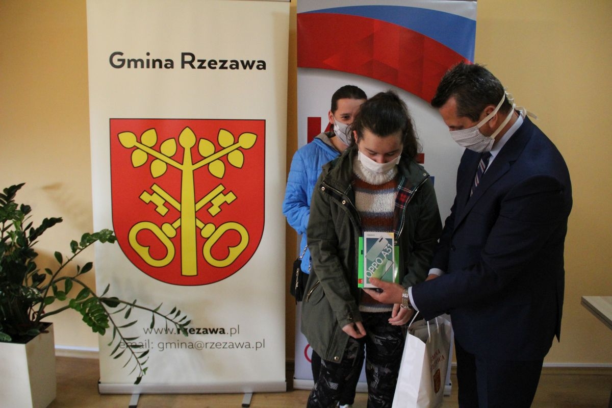 Smartfony firmy Oppo dla dzieci i młodzieży, które znalazły się poza obecnym systemem nauczania, staraniem Gminnego Centrum Kultury, Czytelnictwa i Sportu oraz Urzędu Gminy w Rzezawie zostały pozyskane od Fundacji Polki Mogą Wszystko, która ufundowała te urządzenia. Każde z nich zostało zaopatrzone w kartę SIM sieci Plus z nielimitowanymi rozmowami i SMS-ami oraz pakietem internetu na 3 miesiące.