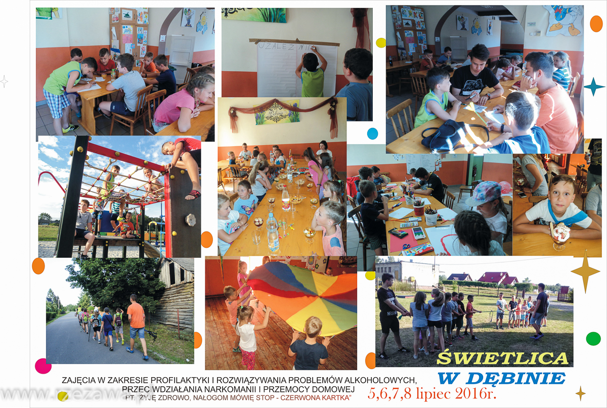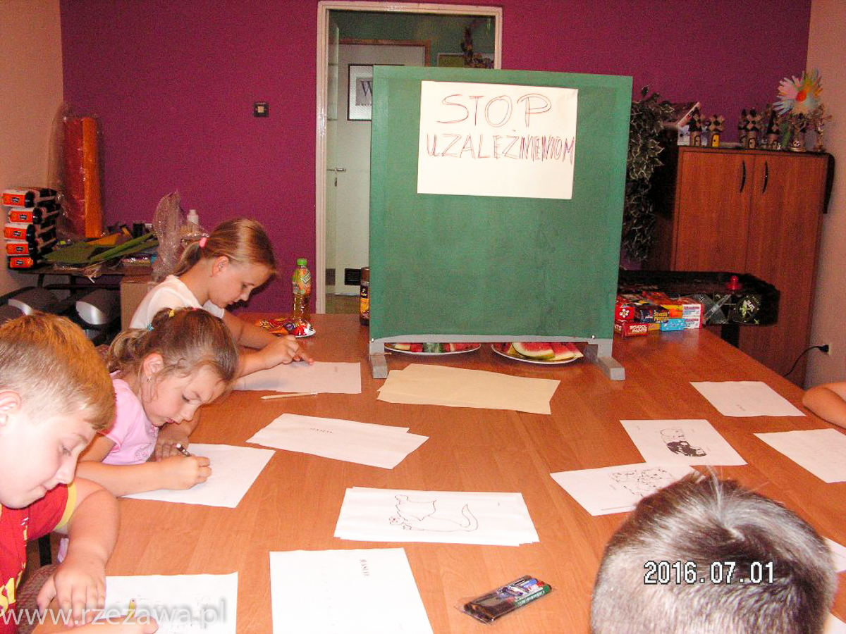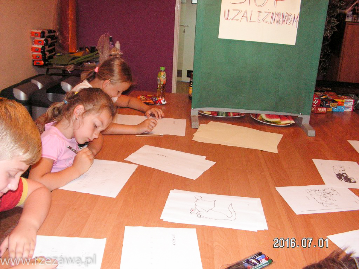 - malowanie kolorowanek związanych z tematyką uzależnień, zdrowego stylu życia, aktywnych form spędzania wolnego czasu,