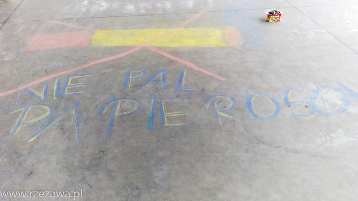 - wspólne wykonywanie wizji „Kolorowego świata bez używek”- za pomocą projektowania obrazu na asfalcie przy pomocy kolorowej kredy,